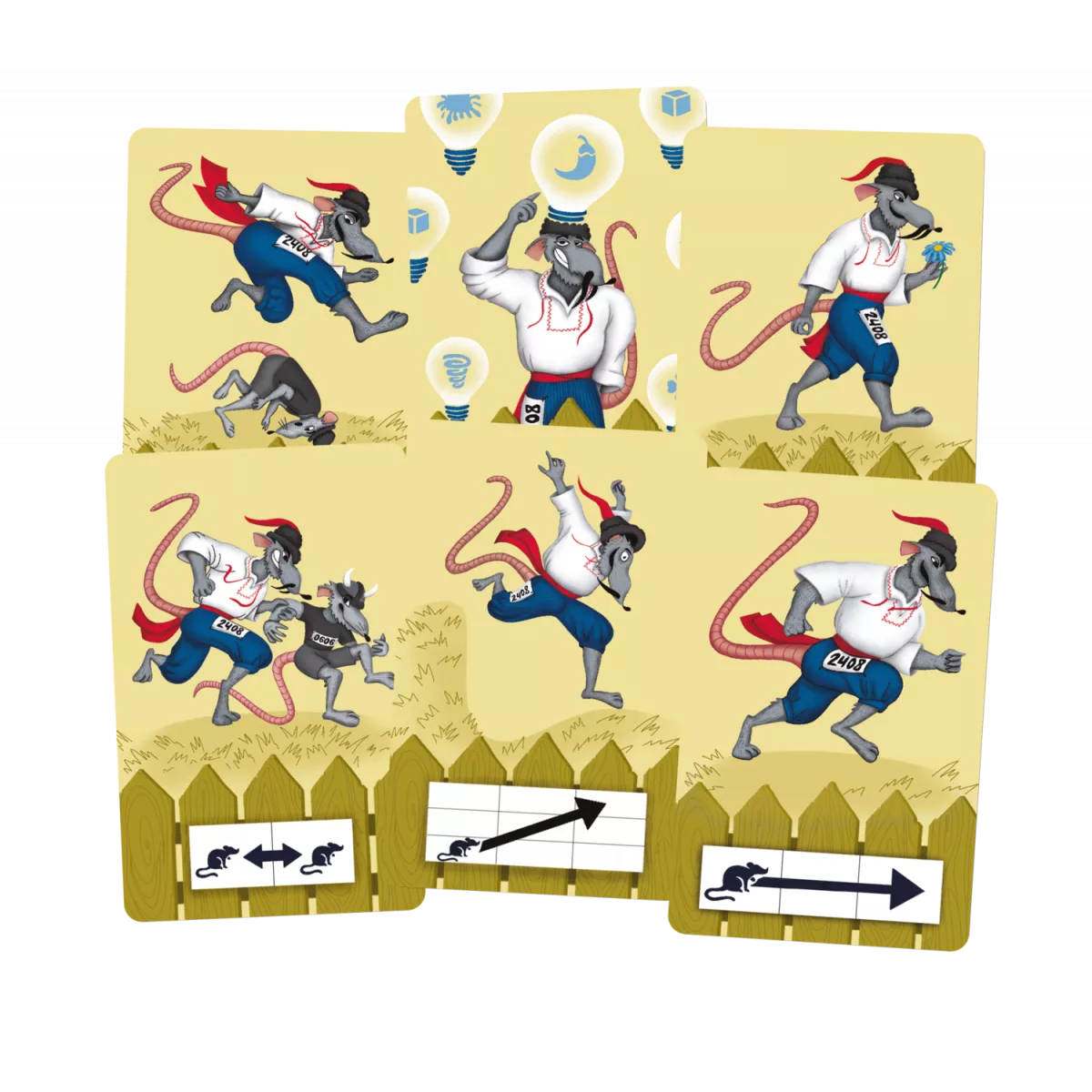 Вітаємо на трибунах щурячих перегонів за смаколиками! Перед вами свіженька карткова сімейна гра від українського автора про спритних щурів, що поспішають за запашним сиром.