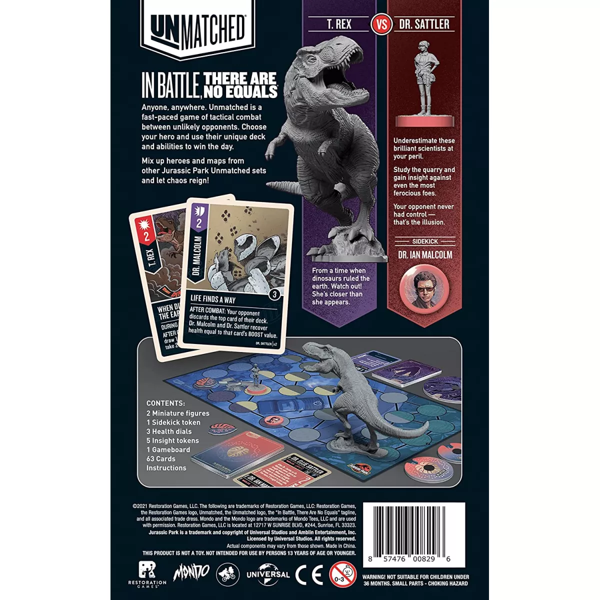 «Динозаври їдять людину… Жінка успадковує землю». Найбільший хижак, якого коли-небудь знав світ, наближається до завзятого доктора Саттлера. Хто має найменше уявлення, чого очікувати? У Unmatched: Jurassic Park – Dr. Sattler vs. T. Rex!