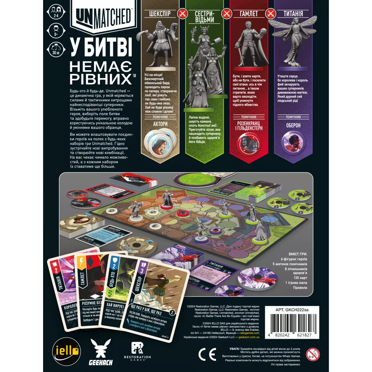 Базові правила «Unmatched» незмінні. Щоб перемогти, треба обнулити життя героя суперника. Гравці ходять по черзі. У свій хід гравець виконує дві будь-які дії – маневр (узяти карту на руку й перемістити своїх бійців), виверт (розіграти карту виверта) та/або атаку (атакувати ворожого бійця, суперники вибирають карти атаки й оборони).