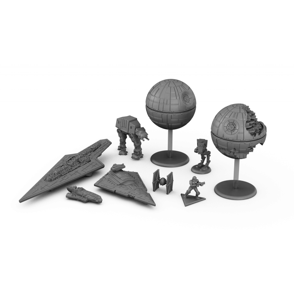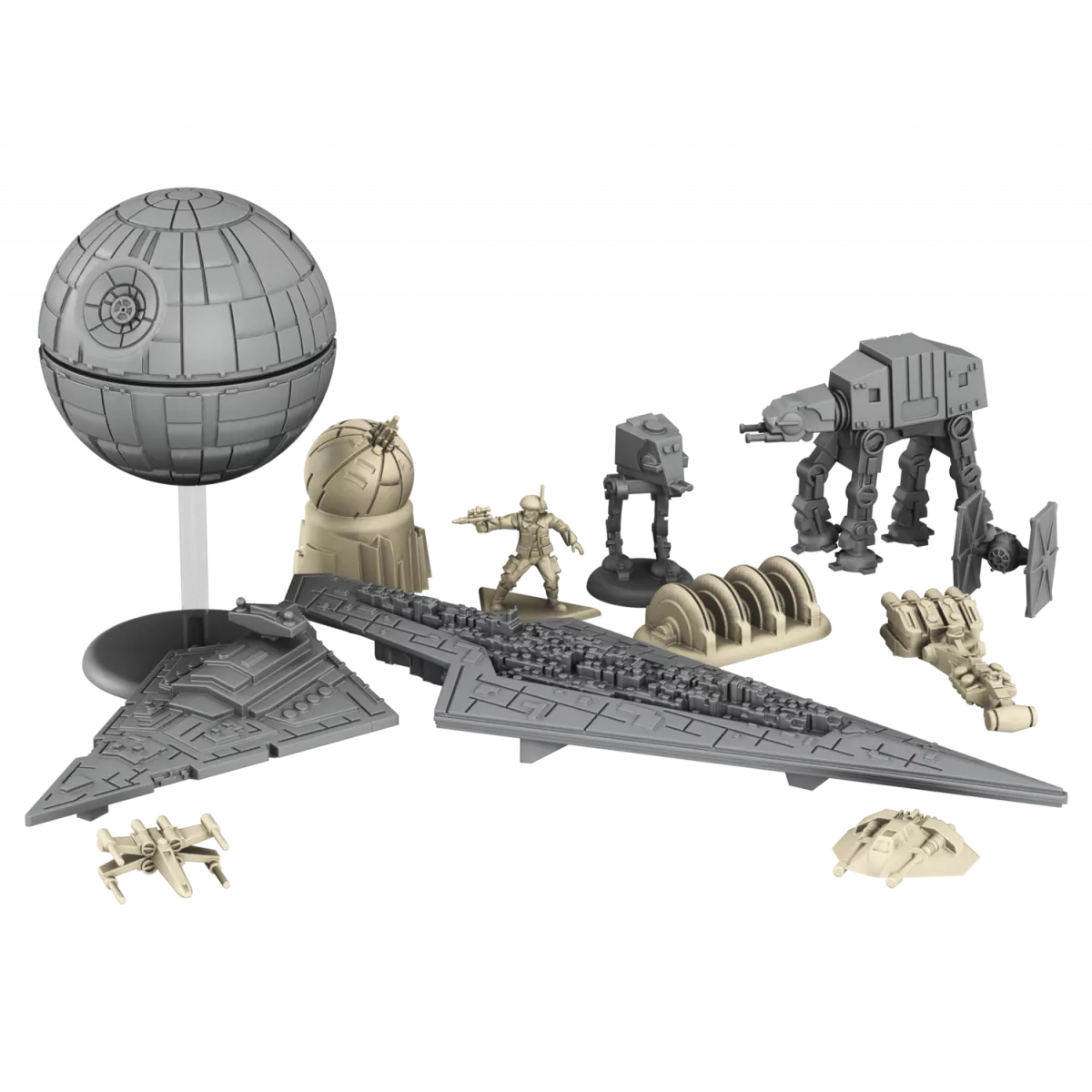 У коробці 1 довідник, 1 правила гри, 1 ігрове поле (складається з 2 частин), 15 карт цілей, 25 лідерів на пластикових підставках (12 імперських, 13 повстанських), 3 жетони знищених систем, 2 листи фракцій (1 імперський, 1 повстанський), 68 карт місій (39 імперських, 29 повстанських), 27 жетонів окупації / лояльності Імперії, 12 жетонів лояльності повстанцям, 32 жетони пошкоджень (24 одиночні, 8 подвійних), 1 жетон часу, 1 жетон репутації, 31 карта дроїдів-розвідників, 7 прикріплюваних кілець, 10 жетонів саботажу, 10 спеціальних кубиків (5 чорних, 5 червоних), 30 карт тактики (15 наземних, 15 космічних), 34 карти дій (16 імперських, 18 повстанських), 153 пластикові фігурки (89 імперських, 64 повстанські)