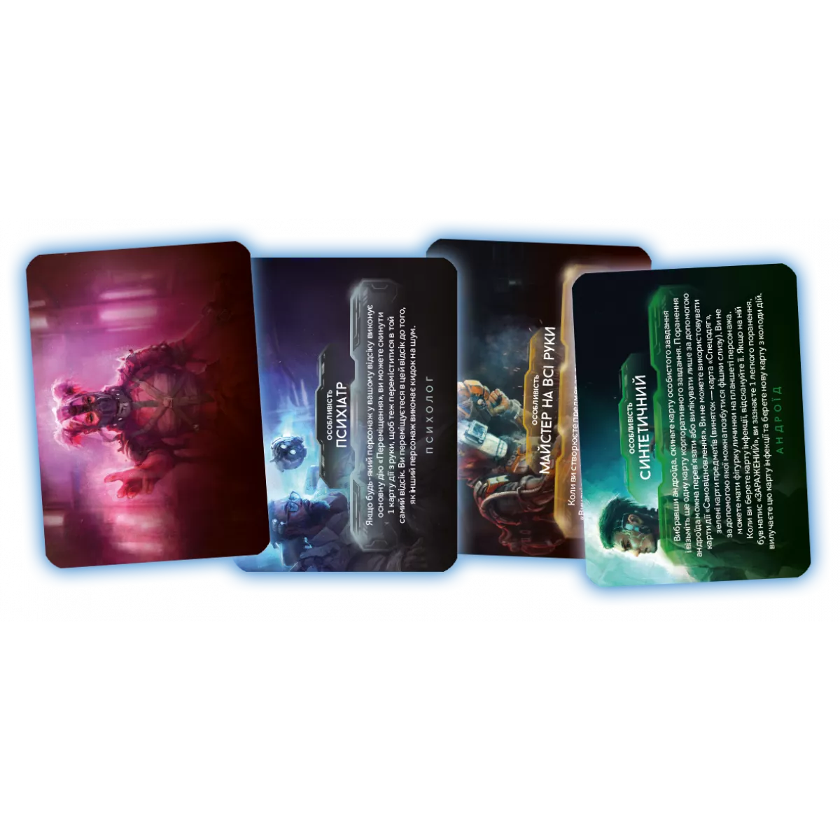 Психолог. Психолог здатний маніпулювати членами екіпажу завдяки своїм картам дій, особливості «Психіатр» або «Дрону-шпигуну». Якщо психолог передає предмет «Дрон-шпигун» іншому персонажу, йому стають відомими всі таємні перевірки, які виконує цей персонаж. Особливість «Психіатр» дозволяє психологу переміщуватися разом з іншим персонажем, коли той виконує переміщення.