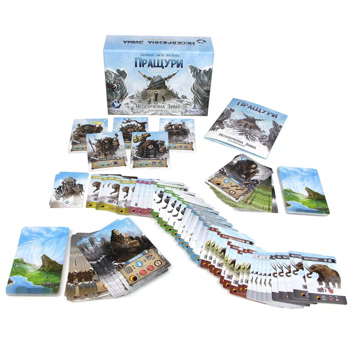 Події Нескінченної зими відбуваються у Північній Америці в ранні дні людської експансії, приблизно за 10 000 років до н. е. Гравці керують розвитком своїх племен протягом декількох поколінь – від кочових мисливців-збирачів до процвітаючих суспільств. Протягом гри племена можуть мігрувати та заселяти нові землі, зростати у кількості, встановлювати культурні традиції, полювати на мегафауну та будувати вічні мегаліти. Нескінченна зима (Endless Winter: Paleoamericans) – це комплексна євро-стратегія, яка інноваційно й елегантно поєднує механіки розміщення робітників, побудови колоди та менеджменту ресурсів. Кожен раунд гравці відправляють своїх членів племені у різні місця на ігровому полі і платять за дії, витрачаючи карти та ресурси. Незіграні карти можуть бути збережені для фази наприкінці раунду, де вони активують серію корисних ефектів. Захопливий ігровий процес і прекрасне оформлення зробили гру Нескінченна зима (Endless Winter: Paleoamericans) однією з найбільш очікуваних настолок 2021 року. До того ж на краудфандинговому майданчику Kickstarter гру підтримали майже 12 000 людей. Настільна гра Нескінченна зима (Endless Winter: Paleoamericans) розрахована на 1-4 учасників віком від 12 років, а тривалість однієї партії – приблизно 60-120 хвилин.