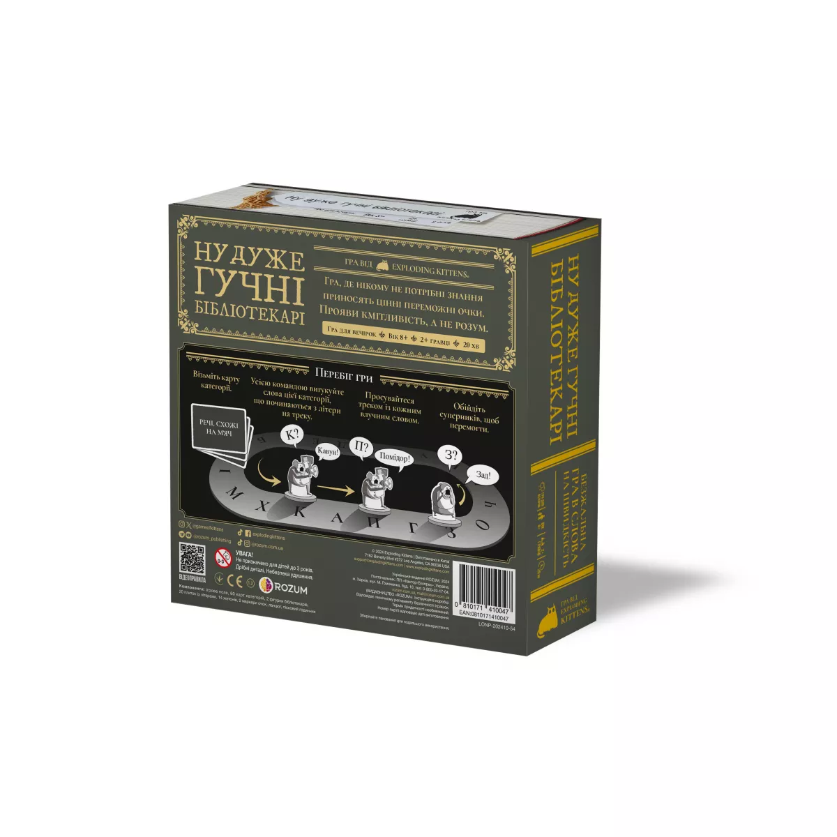 «Ну дуже гучні бібліотекарі» — динамічний творчий патігейм на асоціації. Ваша команда повинна швидко називати слова, які відповідають певній категорії та починаються на задану літеру. Ви перевірите свою реакцію та словниковий запас у цій стильній абсурдній грі. У веселому гармидері знайдеться місце і для логіки, і для креативу, і для справжньої командної магії.