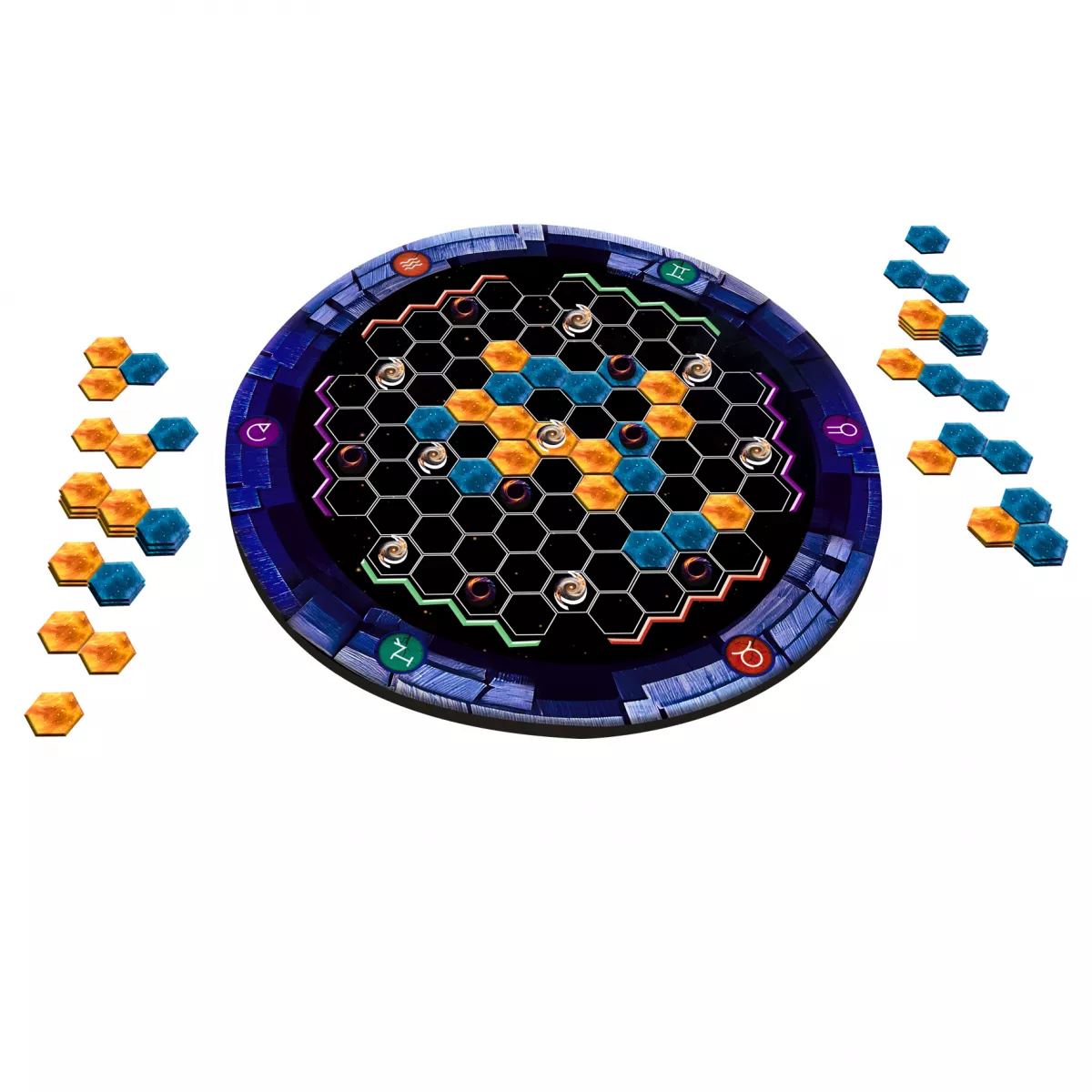 У нескінченності космосу є лише темрява та порожнеча… та це лише на перший погляд. Насправді, серед безлічі зірок та туманностей впродовж мільйонів років відбуваються фізичні процеси, формуючі нові, наче намальовані всемогутнім художником, галактики неймовірної краси. У абстрактній дуельній грі Оріон Дуель (Orion Duel) ви маєте змогу стати одним із цих величних творців, створюючи свої картини всесвіту та поєднуючи вже існуючі туманності. У чому полягає ігровий процес? Кожен із гравців має низку фрагментів свого кольору (подекуди трапляються і частини кольору суперника), які у свій хід викладаються на ігрове поле. Перемогти можна одним з трьох способів: Якщо поєднати нерозривною лінією свого кольору два протилежні кінці поля. Якщо поєднати однією лінією свого кольору чотири галактики, що розташовані на полі. Якщо супротивник поєднає лінією свого кольору три чорні діри (сам випадково, або з вашою допомогою, пам’ятаєте, на ваших тайлах трапляється чужий колір). І правила на цьому закінчуються! Не дивлячись на те, що все виглядає дуже просто, ця гра відноситься до розділу настілок, у яких легко навчитися грати, проте складно стати майстром! Адже стратегій перемоги у грі безліч, завдяки тому, що ви керуєте не лише фрагментами свого кольору, а й маєте вплив на супротивника, як, власне, і він на вас! Тому, якщо ця логічна дуель вас зацікавила, і ви вже придумали, кому можна кинути виклик у цьому протистоянні, – не баріться і замовляйте гру Оріон Дуель до своєї колекції! Коли ж ви хочете взяти участь у абстрактній стратегії, та не у космосі, а на рідній планеті Земля – зверніть увагу на гру Каскадія, де вам буде під силу власноруч формувати кліматичні зони та розводити звірів.