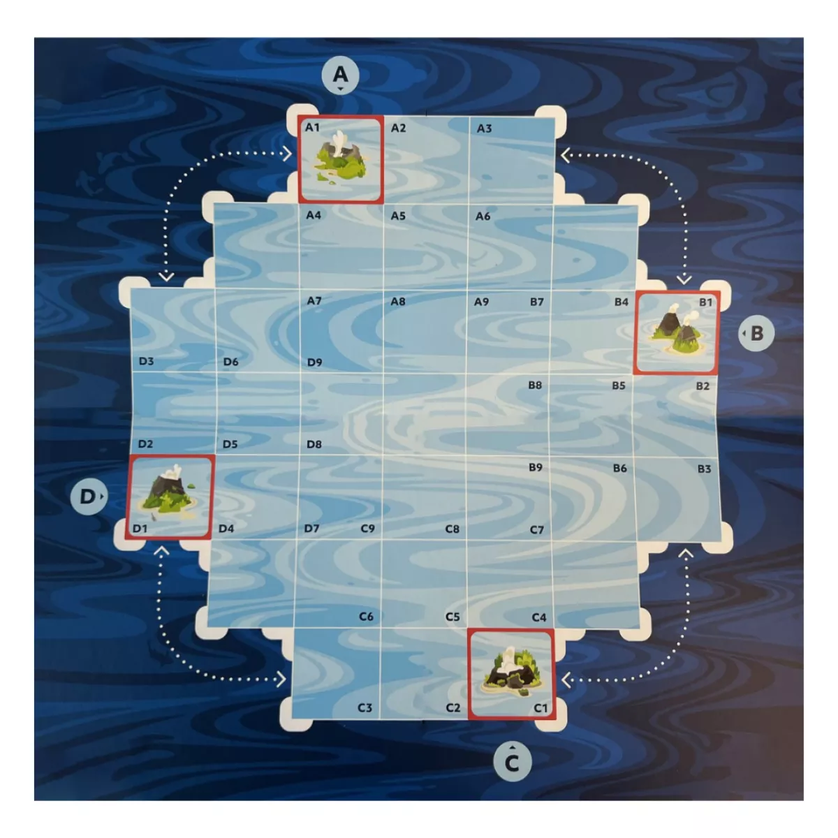На початку партії гравці знаходяться на острові, оточеному водою. Вибратися з нього можна лише зіштовхнувши острів іншою плиткою місцевості, або розіграти виверження вулкану.