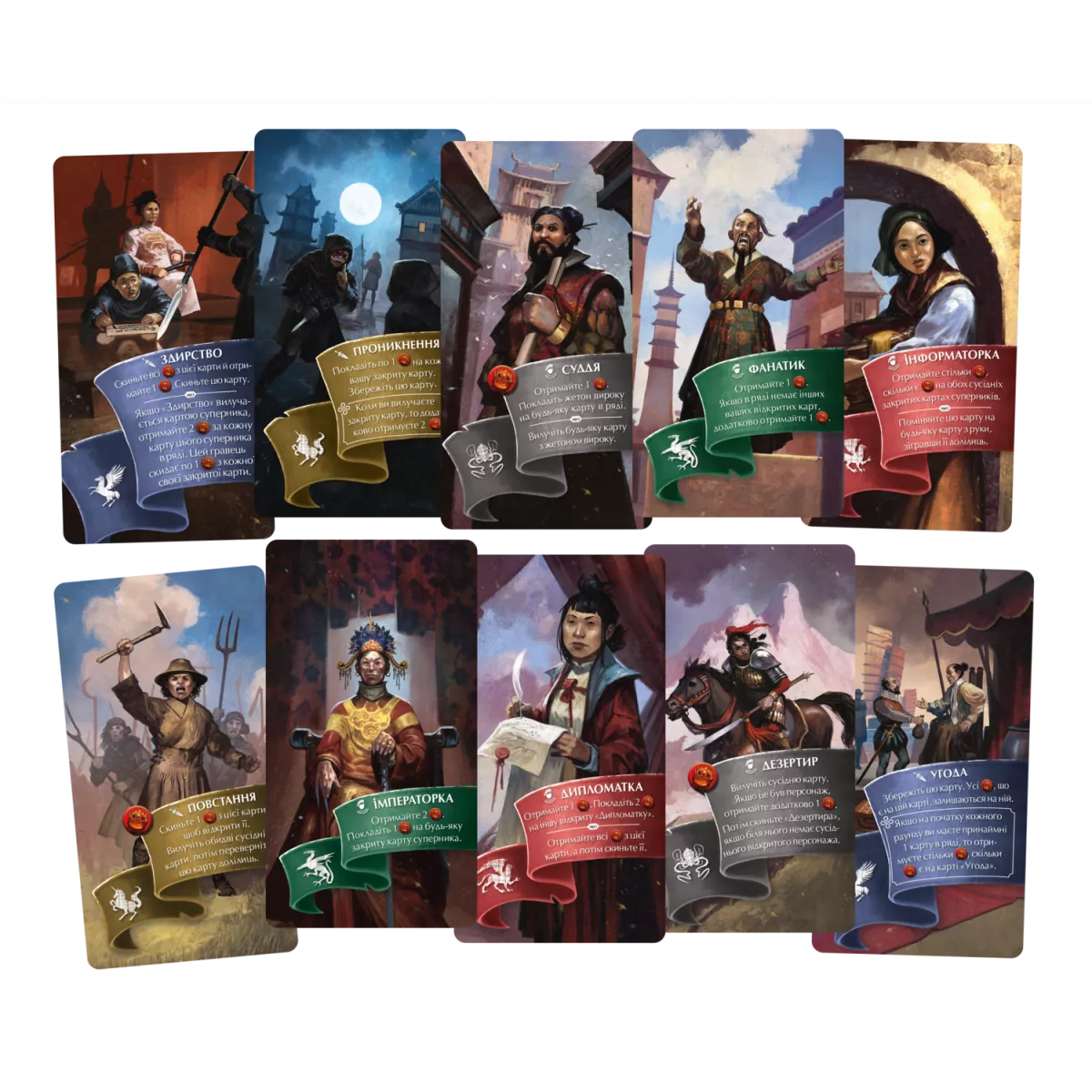 Східняни не завжди покладаються на грубу силу під час вирішення дипломатичних питань, тут потрібен більш тонкий підхід. Треба трохи домовитись, трохи підкупити, а трохи і залякати. Тож настав час великих політичних інтриг у грі Орифлама. Альянс. Орифлама ‒ це стратегічна карткова гра на блеф, у якій учасники протягом шести раундів намагатимуться накопичити якомога більше жетонів впливу. І навіть не так важливо збирати їх собі, як завадити закріпити позиції опонентам. На початку партії кожен учасник отримує 10 карт (всі набори родин однакові), із яких 3 відкладаються та не братимуть участі у грі. Також ви всі одразу отримуєте до свого запасу по одному жетону впливу, щоби суперники мали що красти у вас! Кожен із шести раундів поділяється на дві прості фази: викладання карт і їх активація. Протягом першої частини кожен учасник у порядку ходу повинен викласти одного зі своїх членів родини долілиць на початок або кінець спільного для всіх гравців ряду. Також є варіант, коли можна розмістити свої карти на вже раніше розіграні зі своєї родини. Правда, таким чином ви перекриваєте її властивість. Другий етап дозволяє активувати карти в ряді. Правда, і тут в учасників є вибір, що робити зі своїми членами родин. Якщо карта лежить долілиць, то замість того, щоби її перевертати, можна покласти на неї жетон впливу. Як тільки ж ви її перевернете, то отримаєте всю цю силу до свого запасу. Окрім того, всі карти, що лежать горілиць, виконують свої властивості. Тут представлені всі види придворних інтриг, тому можна як добре зробити собі, так і серйозно вставити палиці в колеса суперників. Переможе той із вас, хто після шостого раунду матиме найбільше впливу. Гра Орифлама. Альянс - це самостійна настілочка, яка може бути поєднана з будь-якими іншими частинами серії Орифлама (наприклад, Орифлама або Орифлама. Полум'я інтриг). Та головною її особливістю є ще більша взаємодія між гравцями. Нові карти направлені не на звичайне знешкодження персонажів інших домів, а навпаки, краще іноді домовитися з іншим гравцем і викласти на стіл карти дипломатів, які дають бонусні очки іншому дипломату. Всі будуть у виграші! Звичайно, якщо ніхто не вирішить зрадити цей союз. Тож Орифлама. Альянс - претендент на найскоріше придбання, осцільки це гра на блеф, в яку цікаво грати і з друзями, і у сімейному колі, та навіть додати її до інших ігор Орифлама, аби зробити партії більш тактичними та розкрити ігровий процес з нового боку! Коли ж вам до душі ігри з прихованими ролями, а також ви бажаєте повпливати на долю Великої Британії часів Короля Артура – зверніть увагу на гру Остання Місія, у якій ви приведете Туманний Альбіон або до процвітання, або до краху.