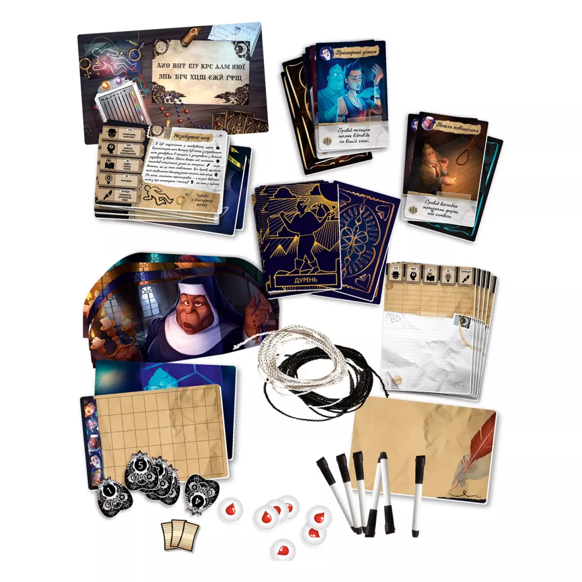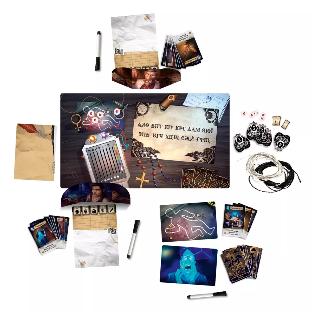 Коробка Паранормальні детективи наповнена якісними та атмосферними компонентами, що підсилюють занурення в ігровий світ. Ви знайдете: