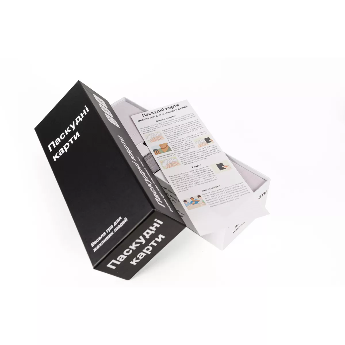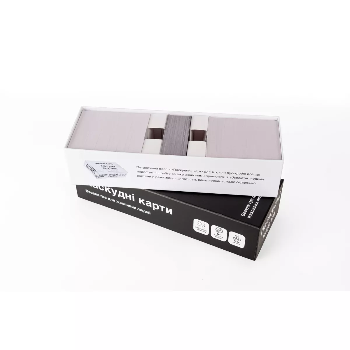 Гра "Паскудні карти" призначена для дорослих і не підходить для сімейного відпочинку або аудиторії, яка чутлива до відвертого контенту, людям зі слабкою психікою та високими моральними принципами.