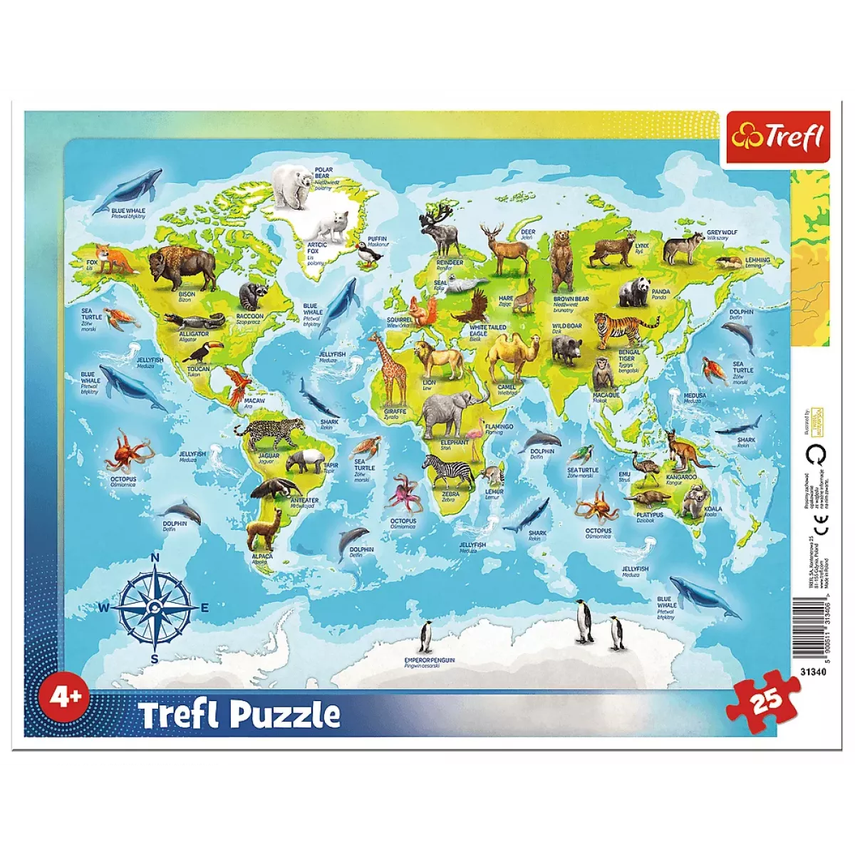 Опис Пазл Рамковий Карта Світу з тваринами (25)
