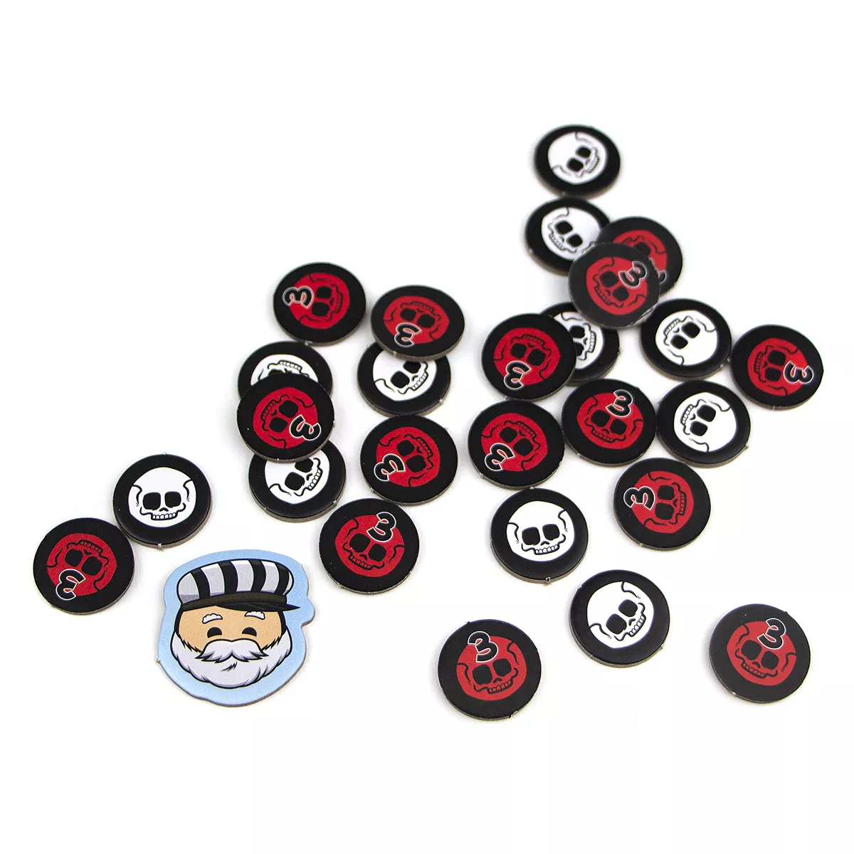 У коробці Ігрове поле, 200 карт з добряками, 125 карт з негідниками, 175 карт секретів, 26 жетонів смерті, Жетон стрілочника, Правила гри