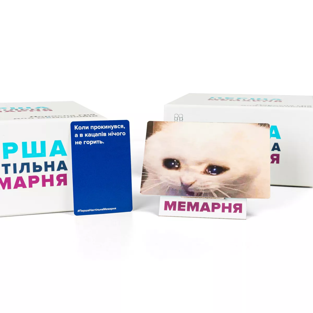 Сьогодні за ігровим столом зібралися справді потужні мемологи та мемологині, чиї навички у жартах в Інтернеті вдосконалювалися десятиліттями. Можливо, саме час провести справжній турнір за звання найвеселішого та найкмітливішого жартівника?! Що потрібно, аби починати жартувати? Компанія від 3 друзів, хоча б півгодини вільного часу, гарний настрій, який все одно прийде, як не крути, та коробочка з грою Перша настільна мемарня (What do you meme),  у якій міститься майже чотири сотні карток із влучними та кумедними виразами і 75 класичних фото-мемів з усіх куточків інтернету! Правила гри дуже прості: ведучий викладає на стіл картку з мемом, а інші гравці підбирають до нього найкумедніший коментар. І він повинен бути найкумедніший з точки зору саме ведучого, тож звичайні жарти нижче поясу можуть заходити не завжди (хоча кого ми обманюємо, зазвичай вони і виходять найсмішнішими). Наймемнішим мемологом наприкінці партії буде визначено того, хто зміг найбільше разів розсмішити інших гравців. Ця людина і так не сумнівалася у своїх здібностях жартівника, але ж усі люблять визнання! Тому коробочку з грою треба замовляти терміново та вже починати обдзвонювати друзів, аби зібрати їх на вечірку! Також ви можете додати найактуальніші меми до вашої вечірки з грою Мемологія Паляниця, аби досхочу пореготіти над недолугим чмонєю та білоруським картопляним диктатором.