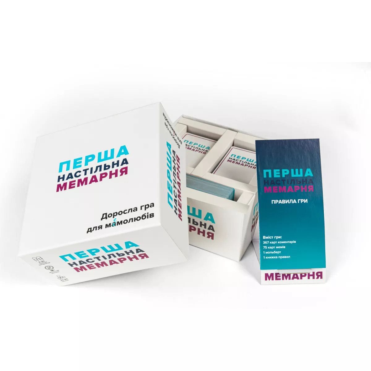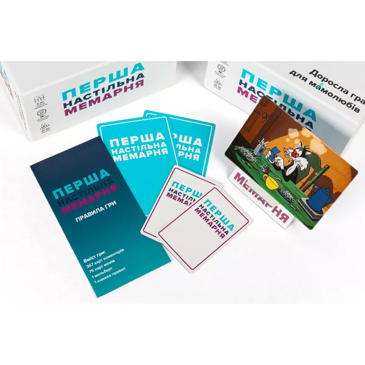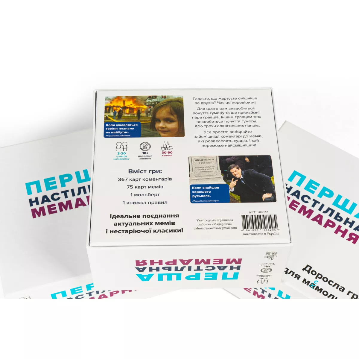 У коробці 367 карт коментарів, 75 карт мемів, 1 мольберт, правила