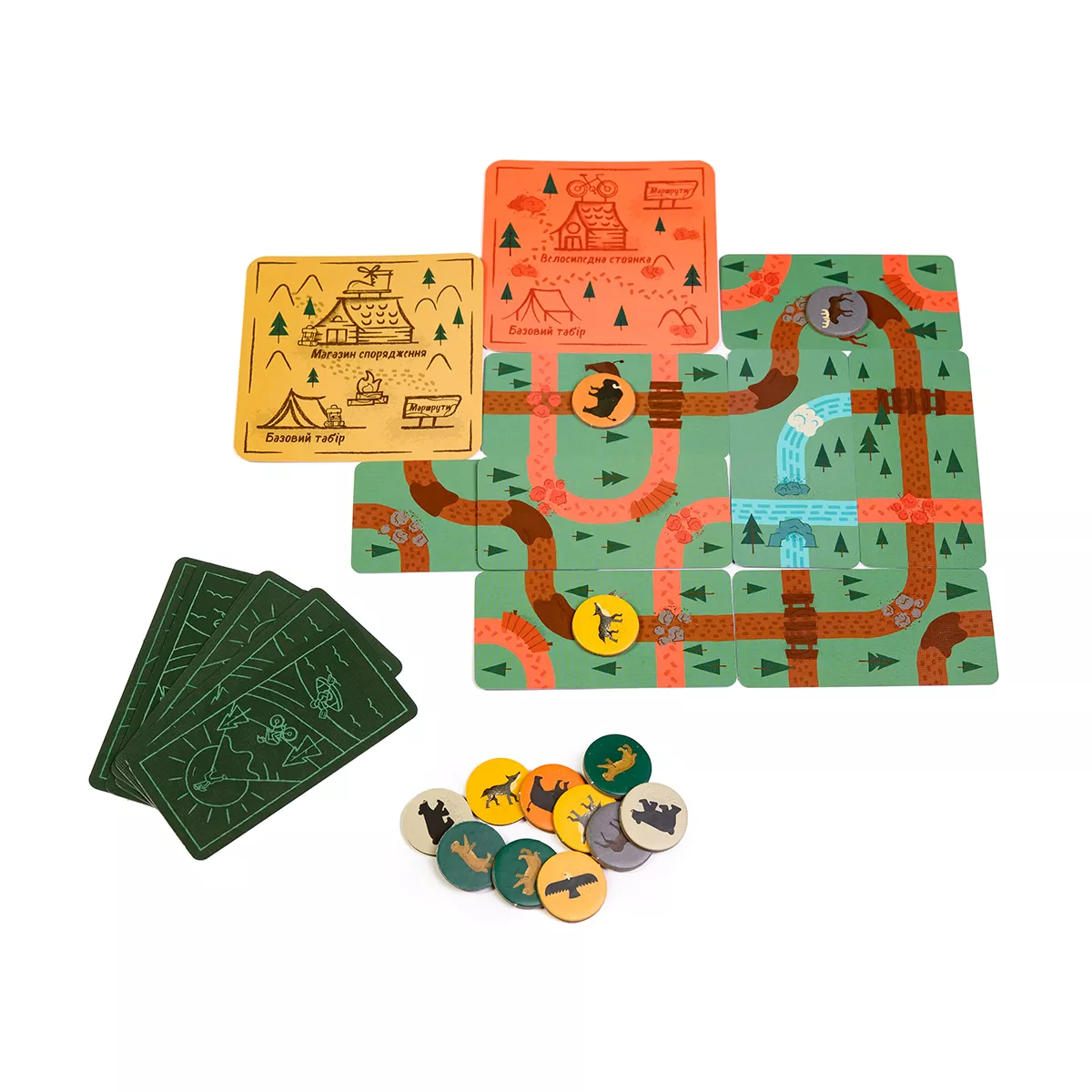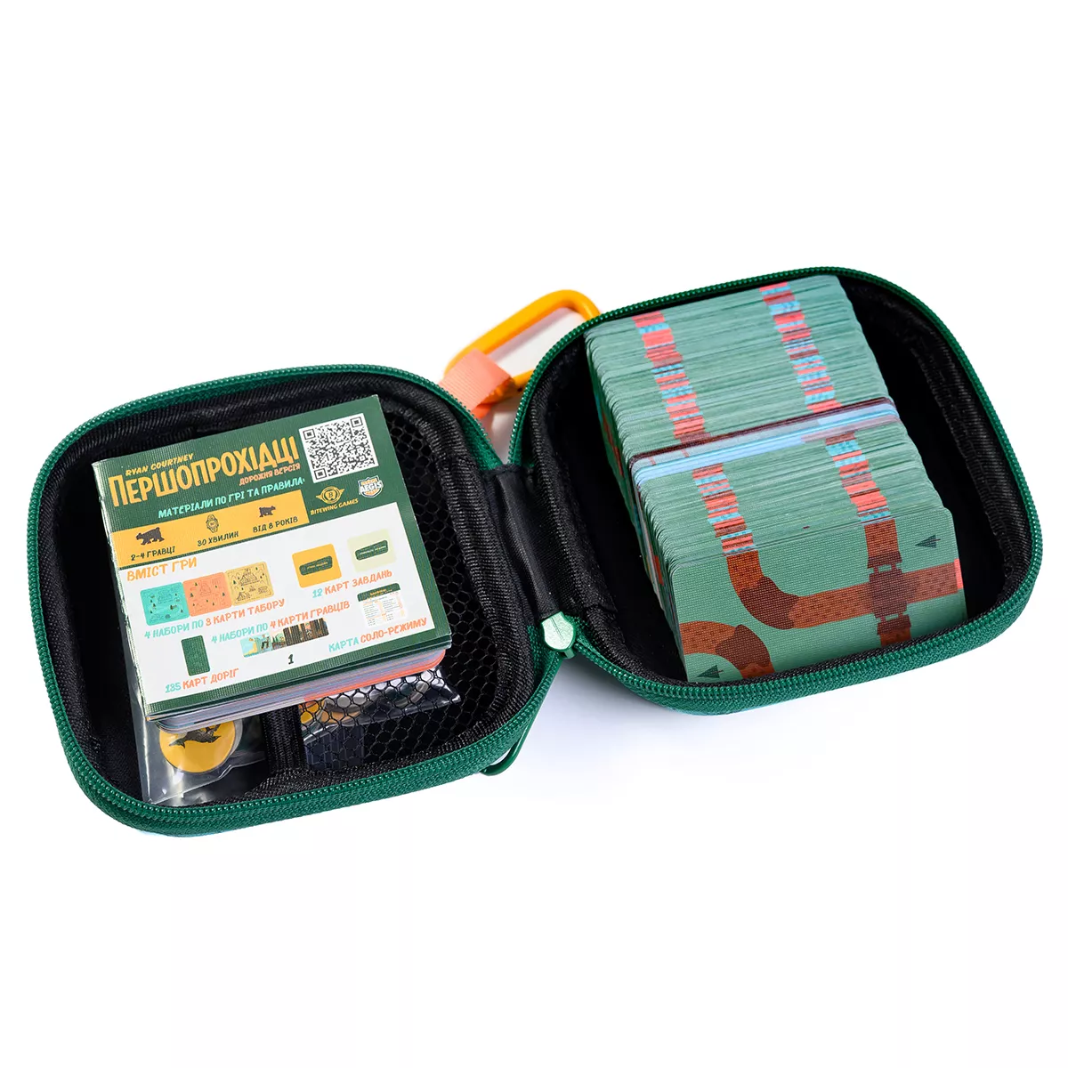 «Першопрохідці. Дорожня версія» — карткова пригодницька гра-головоломка на планування. Гравці досліджують місцевість, прокладаючи найефективніші маршрути. Головне — не заблукати, адже до табору ще треба повернутися!