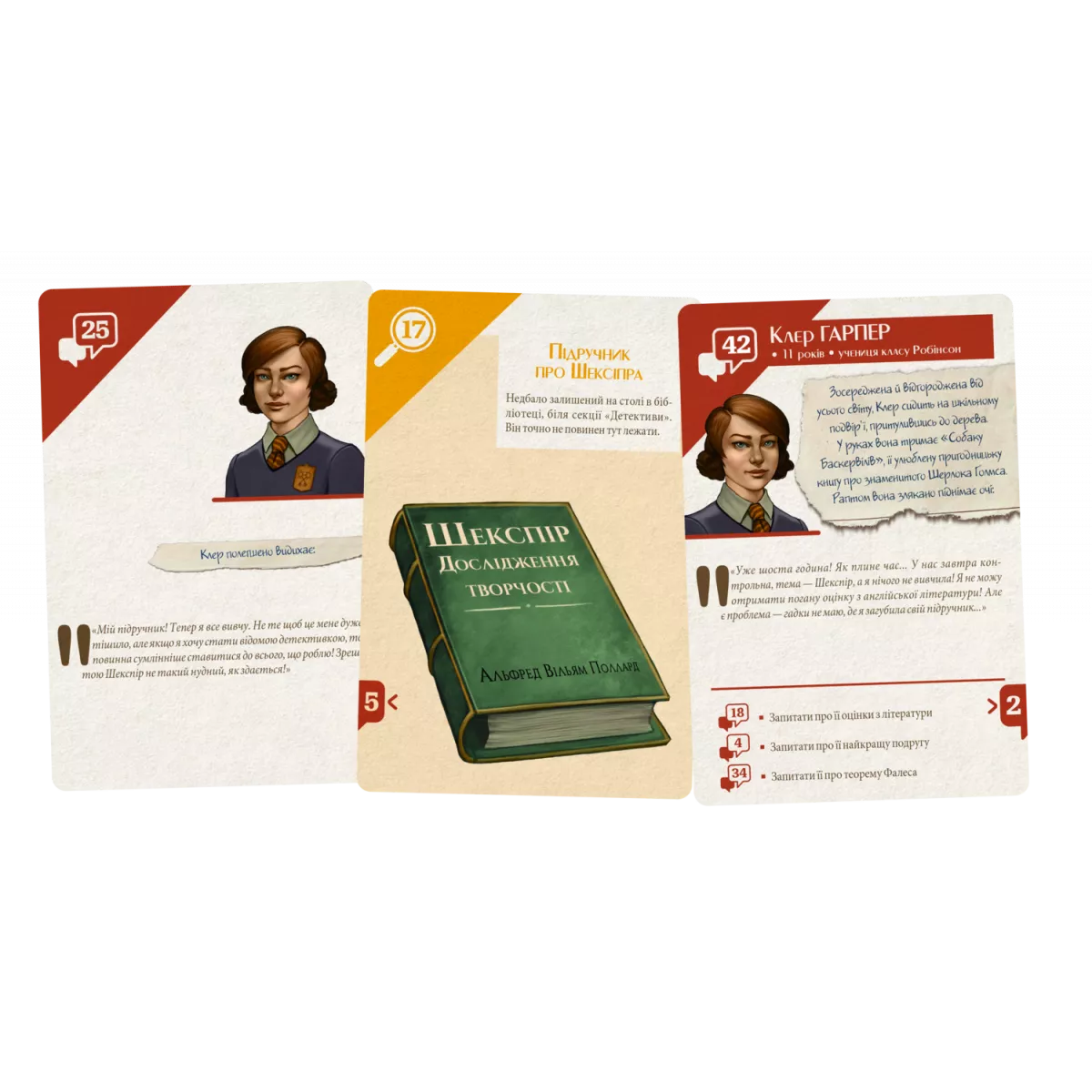 Протягом гри ви читатимете карти доказів, обговорюватимете отриману інформацію, робитимете припущення та певні висновки. Ваша мета – здобути якнайбільше очок, правильно відповівши на запитання.