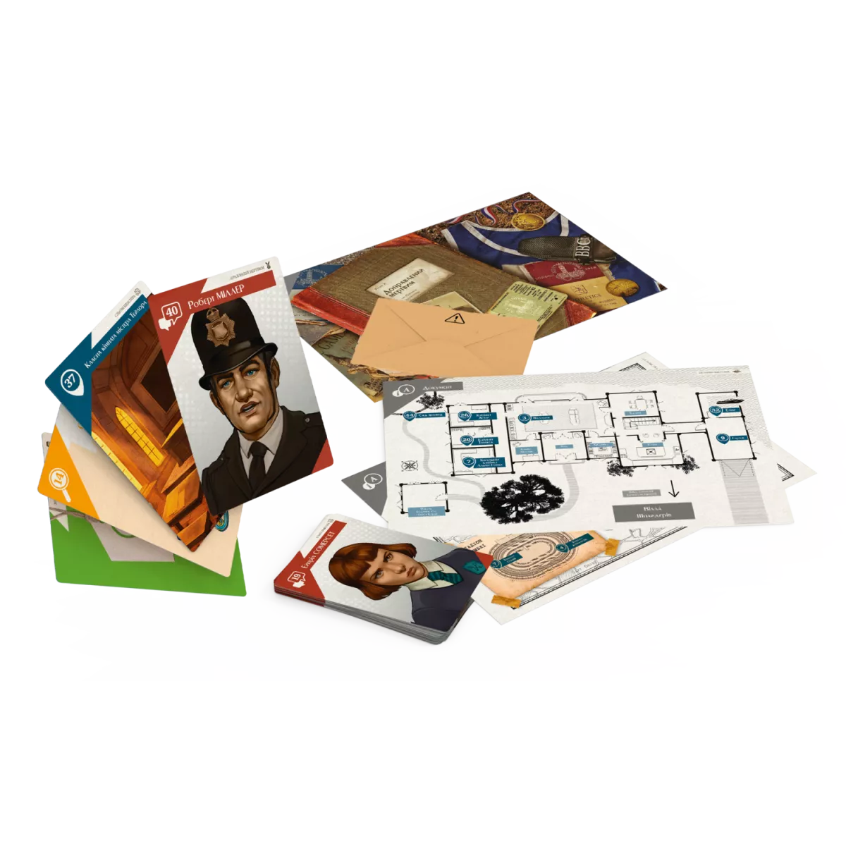У коробці 162 великих карти , 3 листи передмов до справ , 7 мап та документів , 3 конверти з розв'язками , 1 правила гри