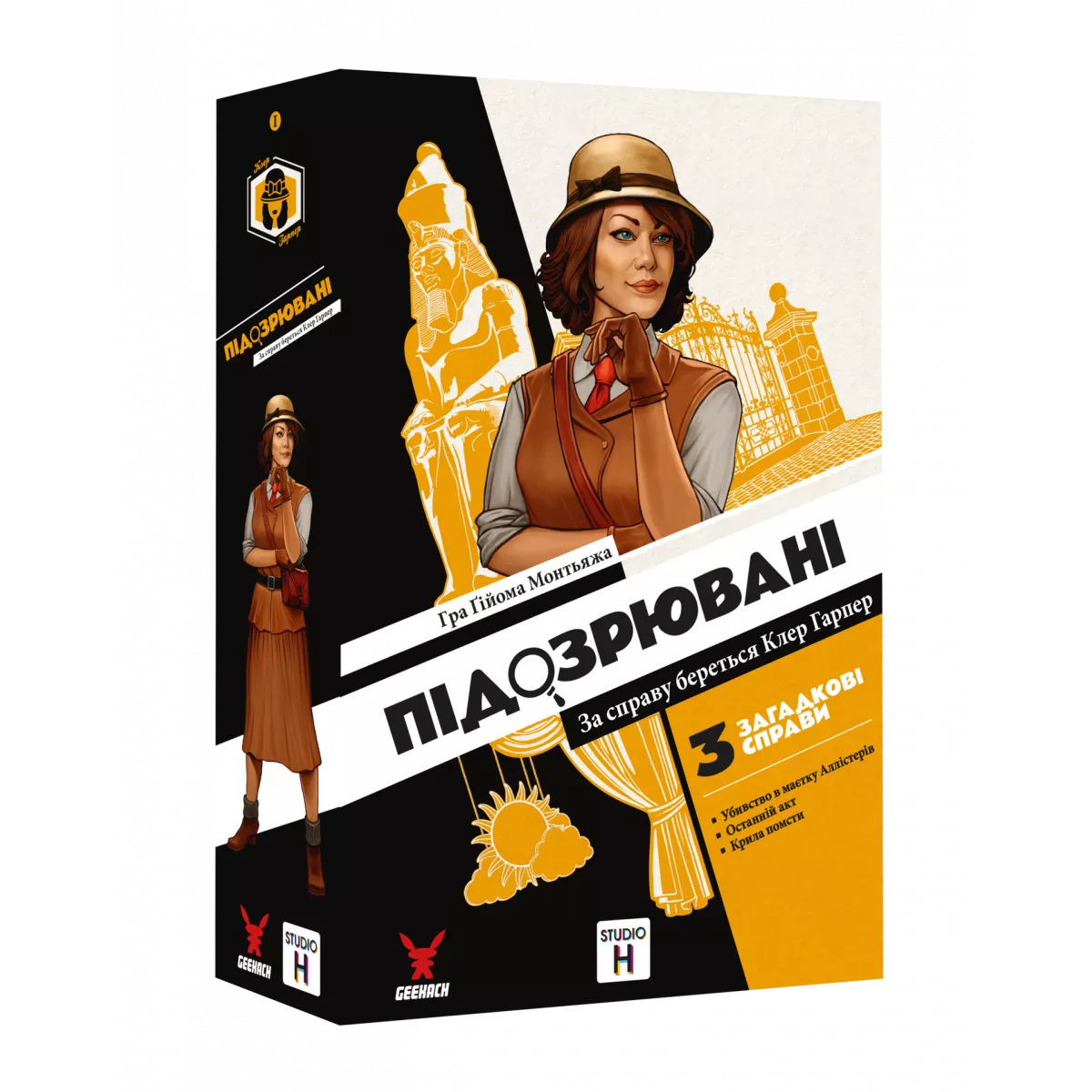 «Підозрювані» – це детективна кооперативна (або ж соло) гра, що пропонує учасникам розслідувати загадкові справи з яскравими персонажами та насиченими сюжетами, натхненними класичними детективами Аґати Крісті. Ви гратимете за Клер Гарпер – молоду детективку, яка розкриває заплутані злочини 1930-х років у різних куточках світу.