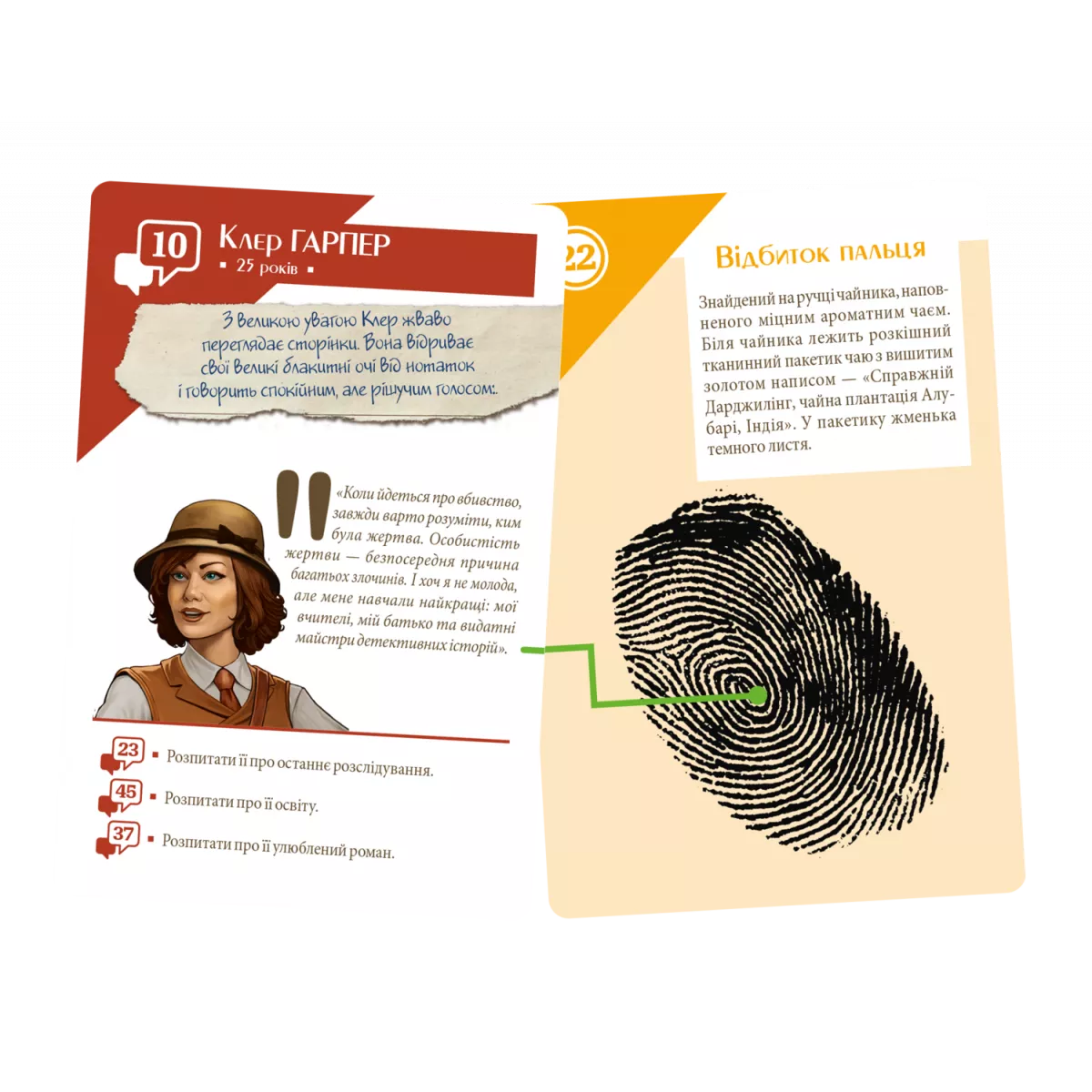 Протягом гри ви читатимете карти доказів, обговорюватимете отриману інформацію, робитимете припущення та певні висновки. Ваша мета – здобути якнайбільше очок, правильно відповівши на запитання.
