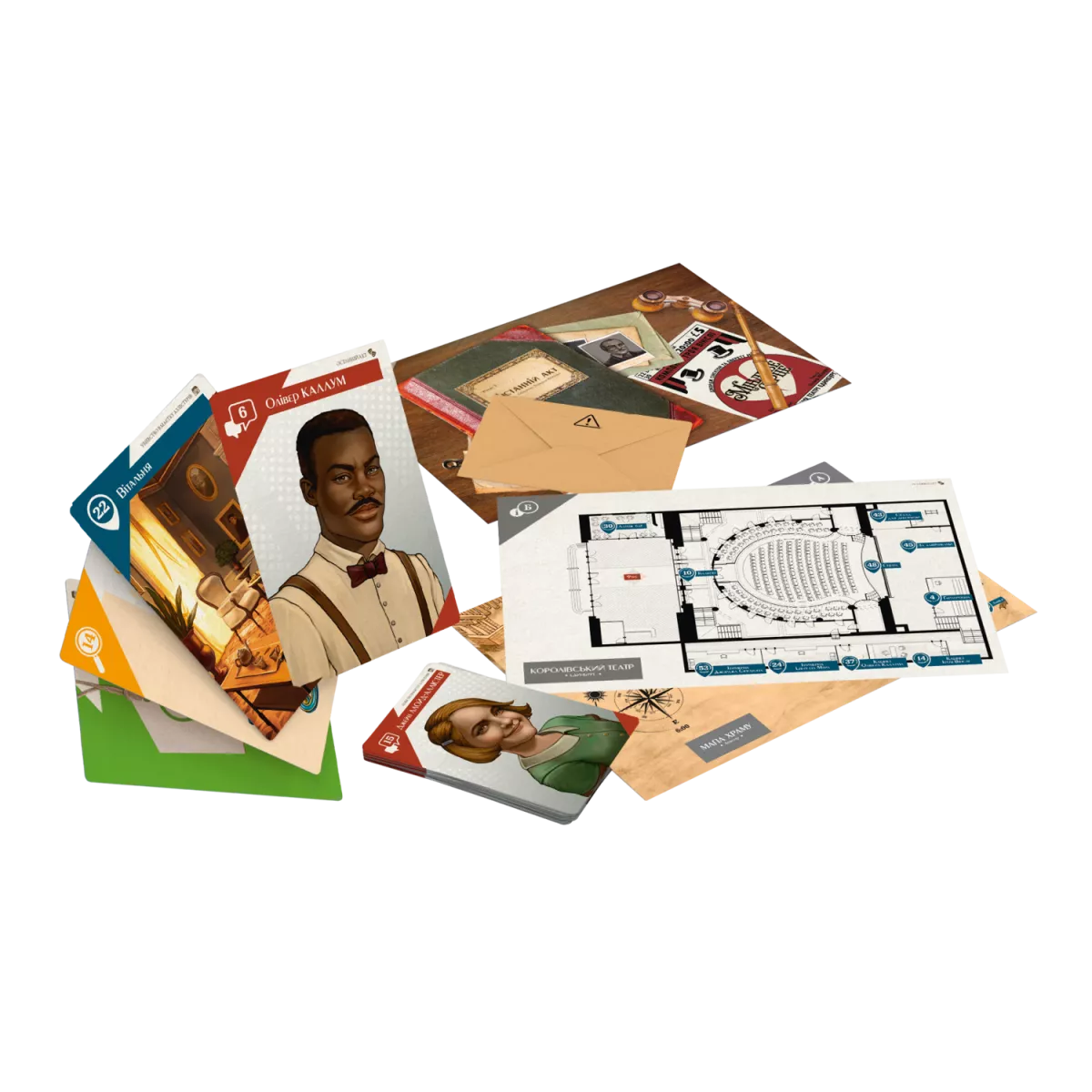 У коробці 167 великих карт, 3 листи передмов до справ, 6 мап та документів, 3 конверти з розв'язками, 1 правила гри
