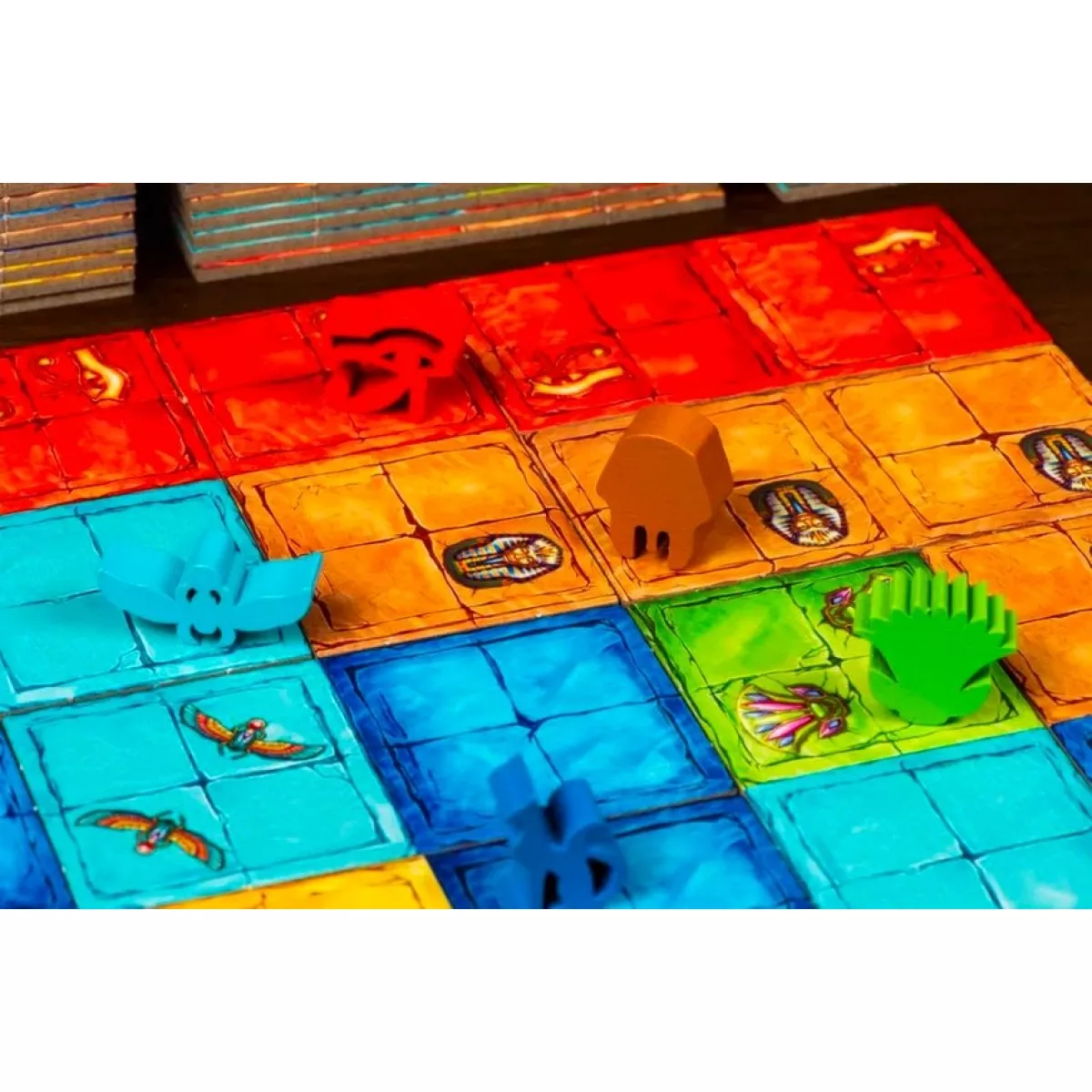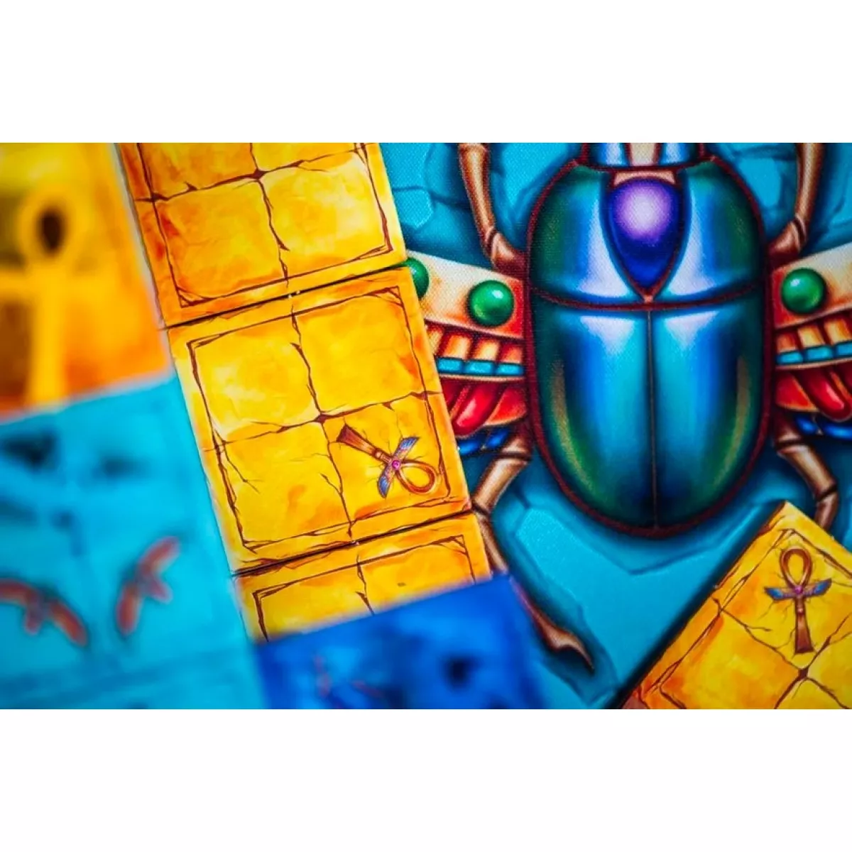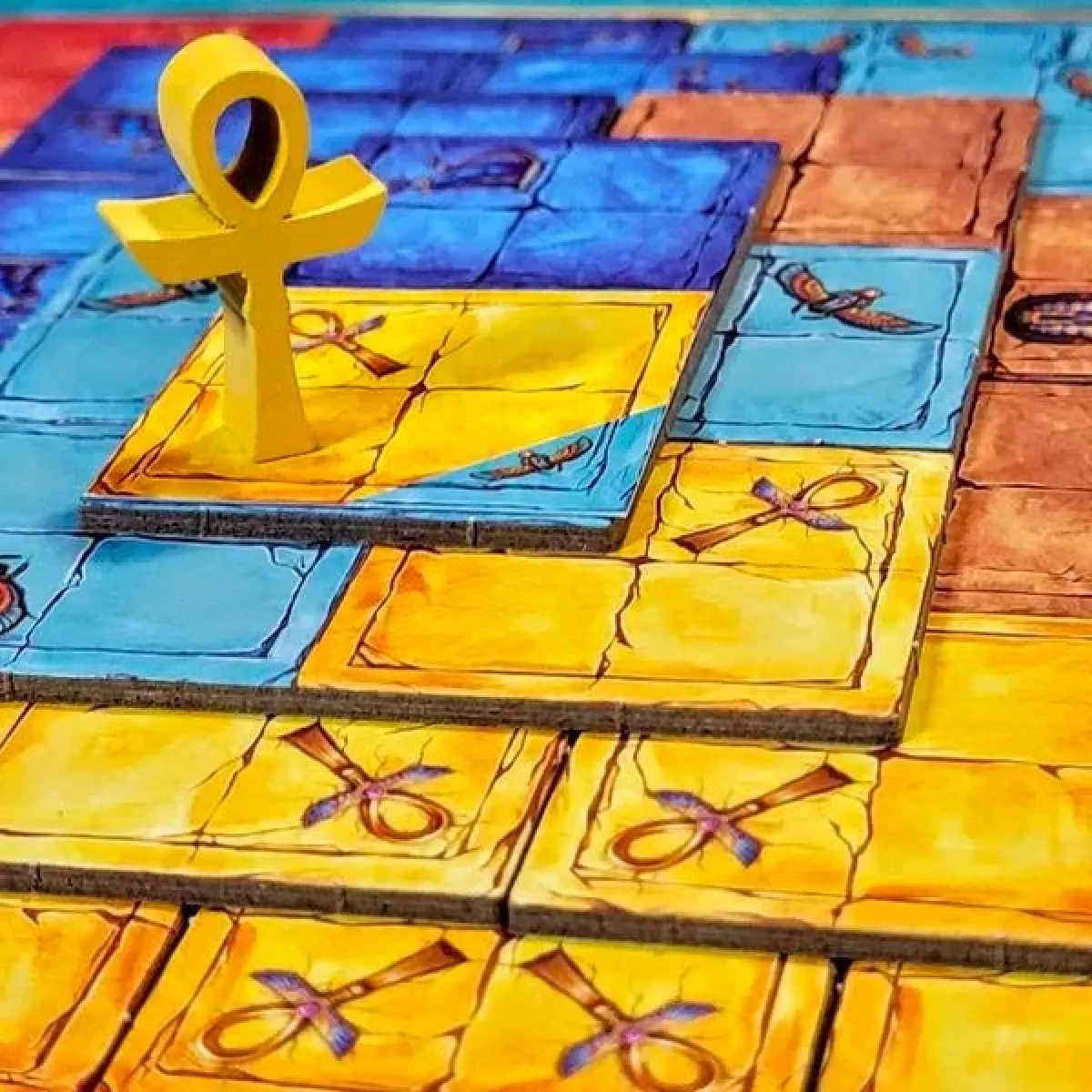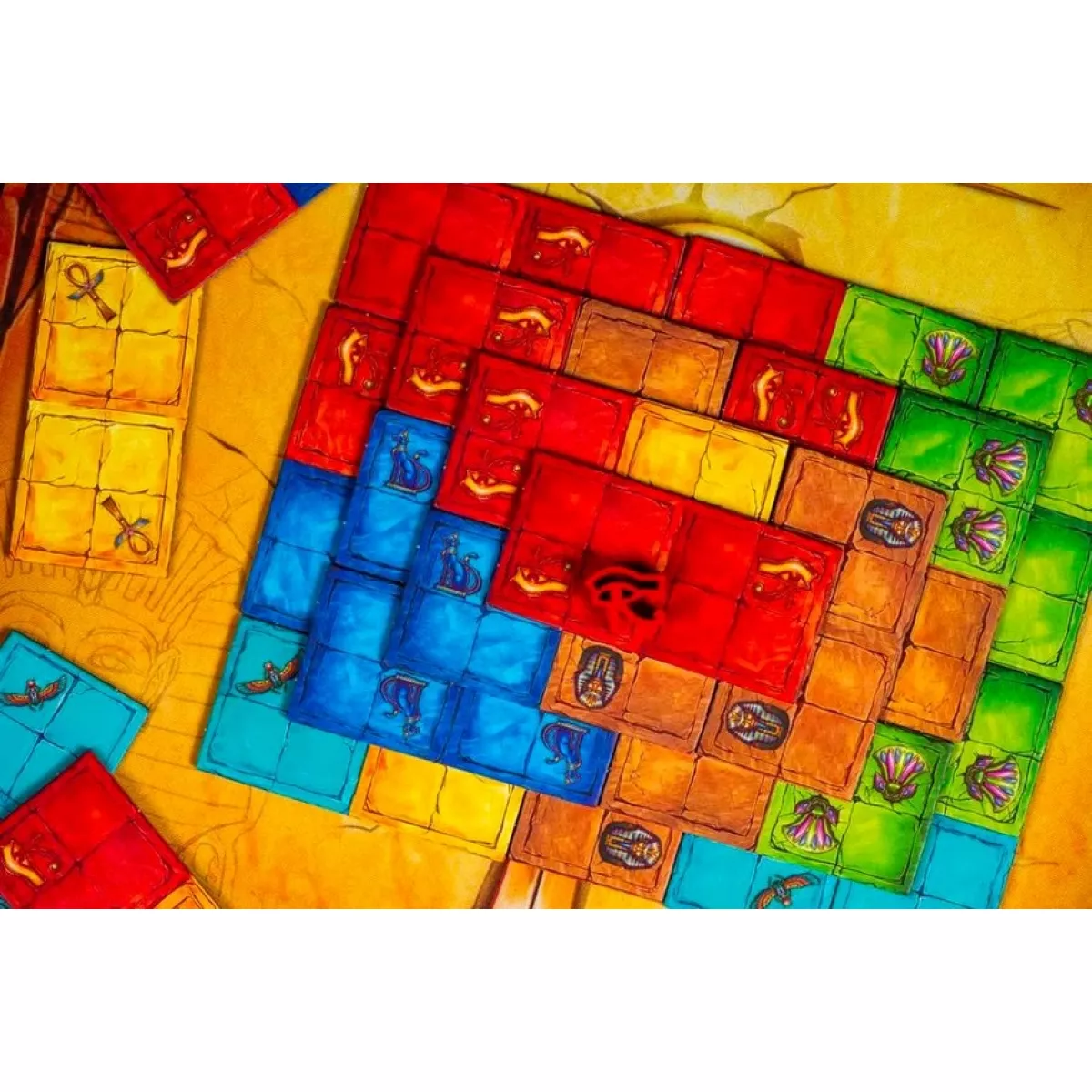 Багаті усипальниці це не забаганка, а потреба будь-якого поважаючого себе фараона. От і фараон Мідо вирішив попіклуватися про свій спокій ще за свого життя, тому і покликав архітекторів, які побудують його розкішну ПіраМідо. Пірамідо (Pyramido) це досить абстрактна настілка для 2-4 гравців, які будуть будувати власні багатоповерхові піраміди, обираючи та викладаючи кольорові тайли та отримуючи скарби. Піраміду побудують всі, але славу отримає лише найкращий Маючи запаси двокольорових тайлів на загальній каменоломні, гравці будують піраміду, цеглинка за цеглинкою, поверх за поверхом. Викладаючи тайл на стіл ви також повинні покласти на цей тайл жетон скарбу того самого кольору (якщо вони у вас вже залишилися). Цей жетон активує можливість отримати винагороди, зазначені на всіх тайлах цього кольору, об’єднаних в одну область. Завершення будівництва поверха означає кінець одного з раундів. Тепер можна повернути скарби назад у руку і підрахувати за них очки. Будьте обачні, адже якщо наприкінці раунду ви не зможете розмістити останній тайл – пусті місця доведеться закривати крихітними цеглинками, яких завжди обмаль. Піраміда це єдине ціле, тому у ній не буде розділення на поверхи після завершення будівництва Кожний наступний етап буде трошки менший за попередній, проте ви досі можете отримати винагороди, зазначені на нижніх частинах піраміди. Знову таки, за умови, що ви виклали на тайли відповідні скарби. Архітектором переможцем визначають того, хто за результатом добудованої піраміди назбирає якнайбільше скарбів. Пірамідо це досить проста гра, яка підійде і для партій з друзями, і для настільних вечорів з родиною. Тут не буде сварок, прямої конкуренції чи підстав, ви просто намагаєтесь краще за інших впоратись зі своєю роботою. Тому якщо такий ігролад вам до смаку, обов’язково придбайте коробочку з настілкою Пірамідо. Також вашої допомоги потребує оздоблення й іншого королівського палацу, але тепер вашим інструментом буде мозаїка у неймовірній абстрактній грі Азул.