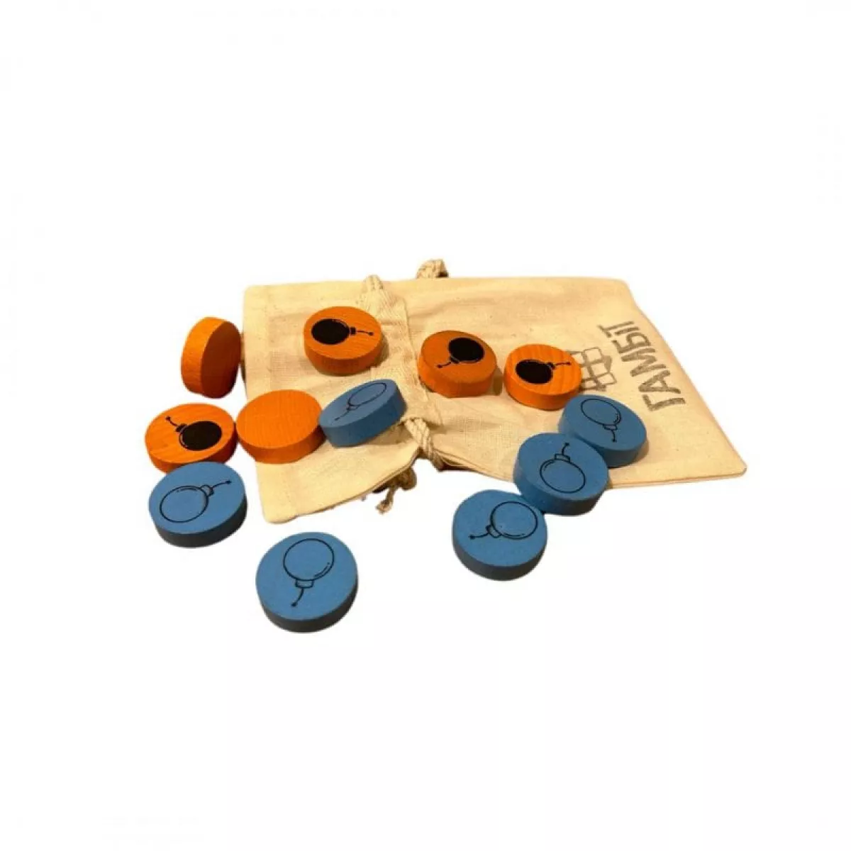 12 великих яскравих деревʼяних шайб (з них 2 запасних) двох кольорів.