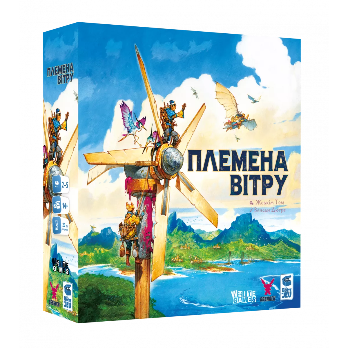 Людство знову помилилося і все пішло шкереберть: жити можна лише на деревах, адже поверхня землі забруднена, рослини не ростуть, а води майже немає. Але всі заслуговують на другий шанс (у випадку з людством - давно не другий, та все ж). Чи готові ви з друзями взятися за кропітку роботу щодо відновлення природи і відчути себе справжнім лідером одного з 5 унікальних племен, що оселилися на верхівках дерев та панують над стихіями? У сімейній євростратегії Племена вітру (Tribes of the Wind) за півтори години ви встигнете зайнятися і очищенням місцевості від токсичних речовин, і розбудовою поселень та храмів, і висадженням лісів, використовуючи для цього власний планшет, особливості племені та карти, що маєте на руці. Дехто може спитати: «Це що, одна з тих ігор без взаємодії з іншими, де граєш ніби сам із собою?» От тут і ховається секрет: головна особливість гри якраз у ваших картах! Адже ви, як Аватар, будете контролювати чотири стихії - вогню, води, вітру та землі, які і стануть у нагоді під час порятунку світу. Кожна карта має вимоги, які напряму залежать від ваших суперників! Іноді буває, що у вас карт вогню повинно бути більше, ніж у сусідів, іноді навпаки, якщо ви єдиний гравець без карт води - отримаєте бонус. А як перевірити, у кого що на руці? Для цього передбачені неймовірно зручні тримачі для карток, які дають змогу як вам, так й іншим гравцям бачити зворот карти та її приналежність до певної стихії. Наприкінці гри чим більше поселень з храмами, чим більше лісів ви висадили, а головне - чим менше забруднень лишилося на вашій частині землі, тим кращим буде результат! Тож збирайте компанію друзів, родичів, аби разом зайнятися відродженням природи, адже після великих війн ой як необхідно зайнятися відновленням всесвіту та духовного миру і спокою. Не можна не відзначити і якість компонентів: храми, селища та вершники вітру кожного племені мають неймовірно естетичний вигляд і приємні на дотик, а малюнки на картках, які навіюють спогади про анімаційні мультфільми дитинства, оформлені у таких приємних тонах, що хоч у рамку вставляй! І щойно ви завершите проведення усіх оздоровчих процесів для рідної планети, сміливо беріться й за озеленення іншої у грі Тераформування Марса чи її молодшому побратимі Тераформування Марса. Експедиція Арес.