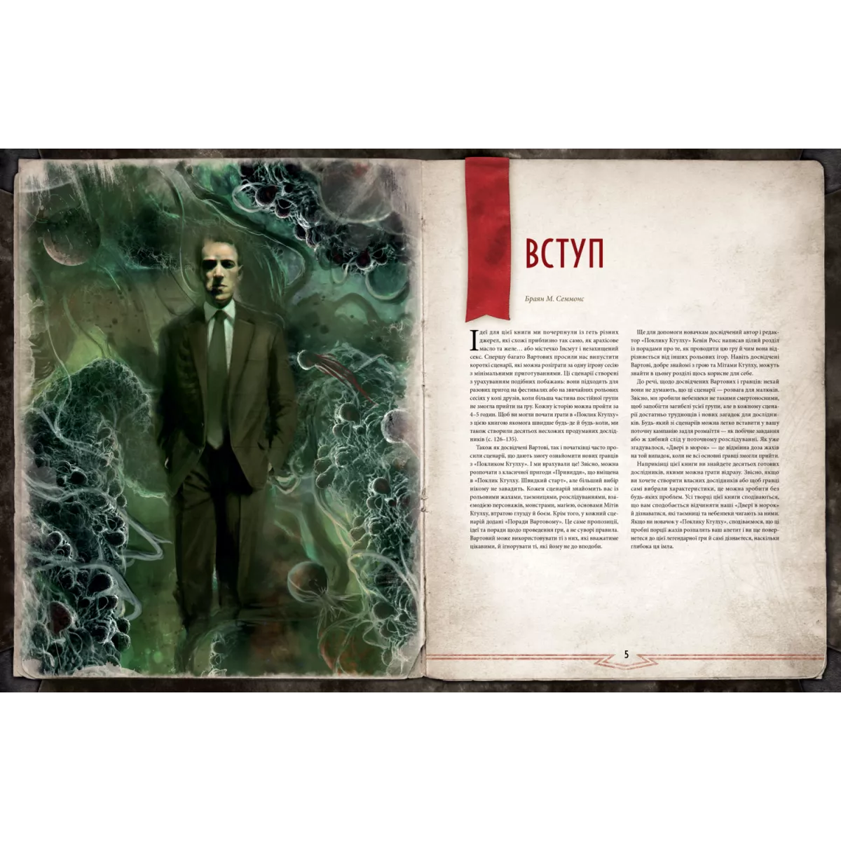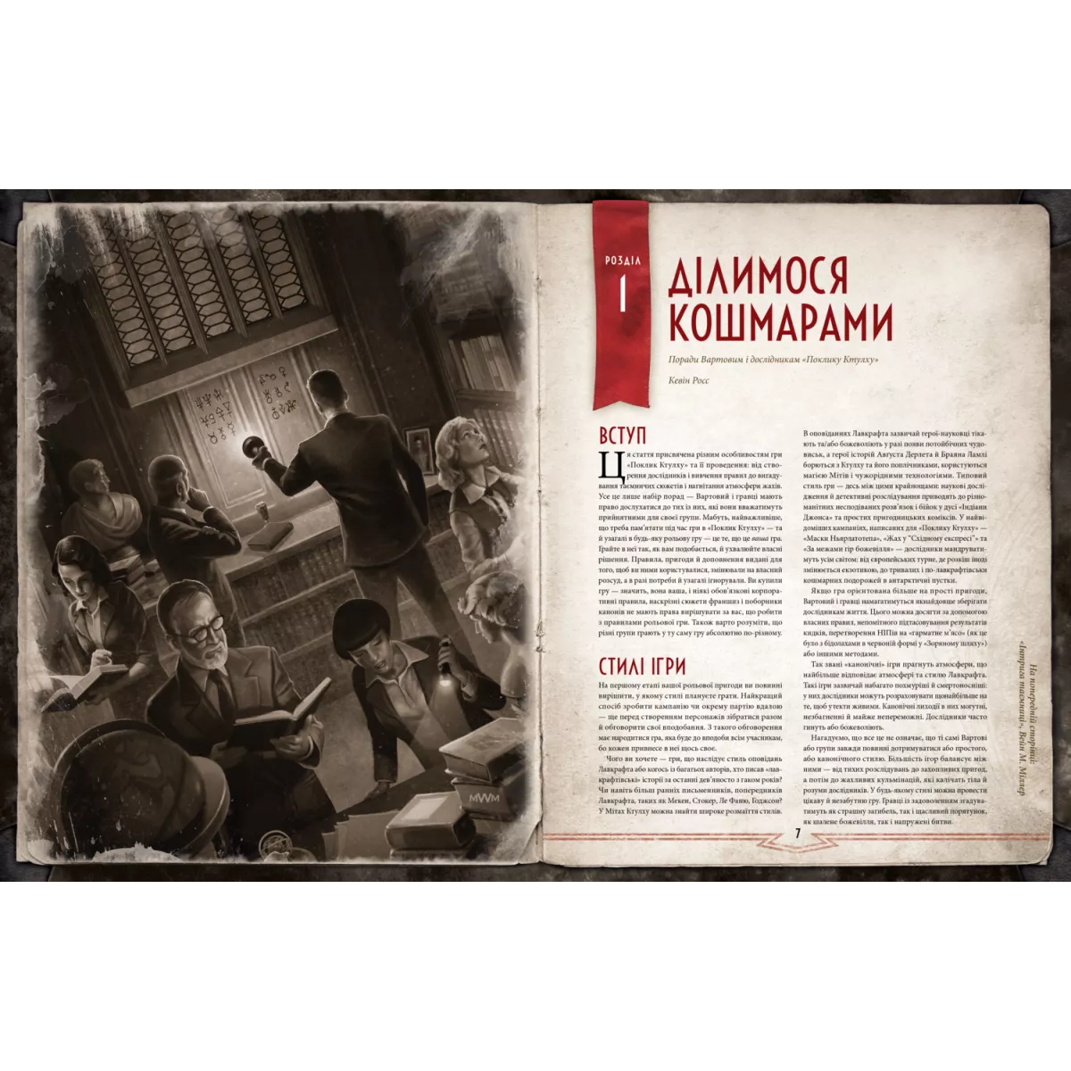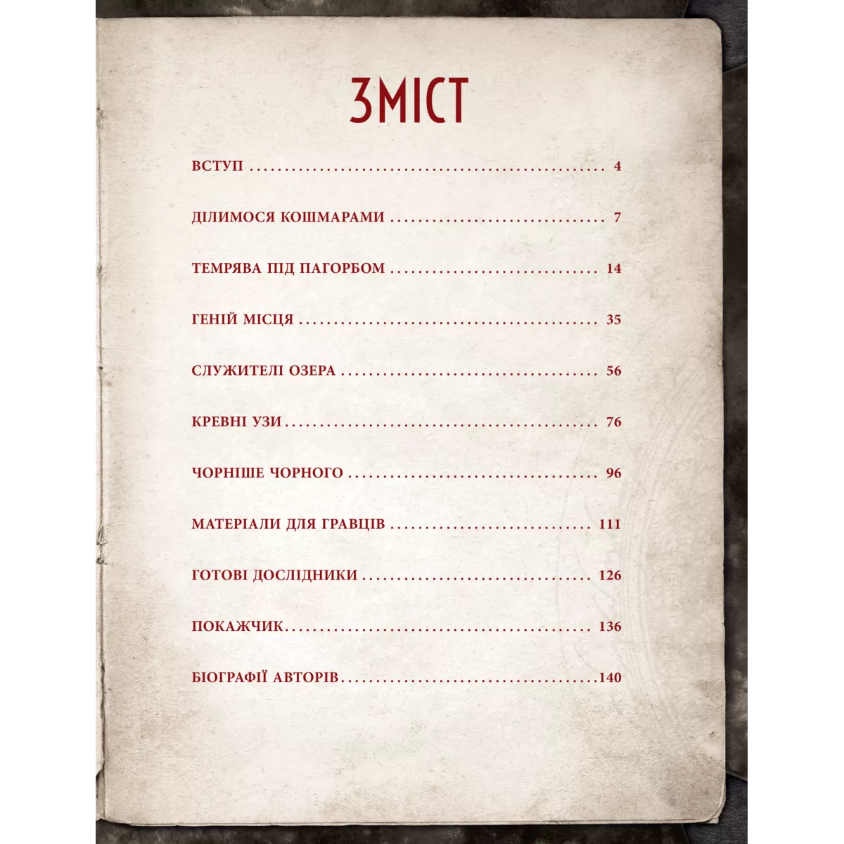 Книга також включає спеціальний розділ із порадами й підказками щодо проведення ігрових сесій, де навіть досвідчені майстри знайдуть щось цікаве для себе, і десять несхожих і продуманих готових дослідників, що дадуть змогу відразу зануритись у вир химерних подій і таємниць.
