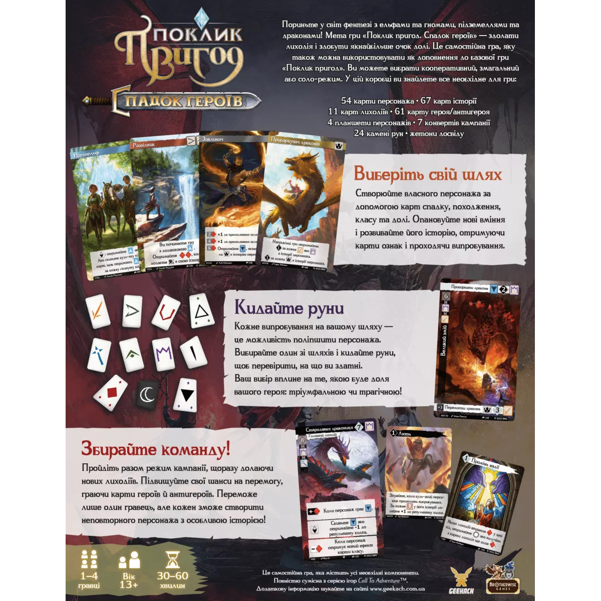 Опис Настільна гра Поклик пригод. Спадок героїв (Call To Adventure: Epic Origins)