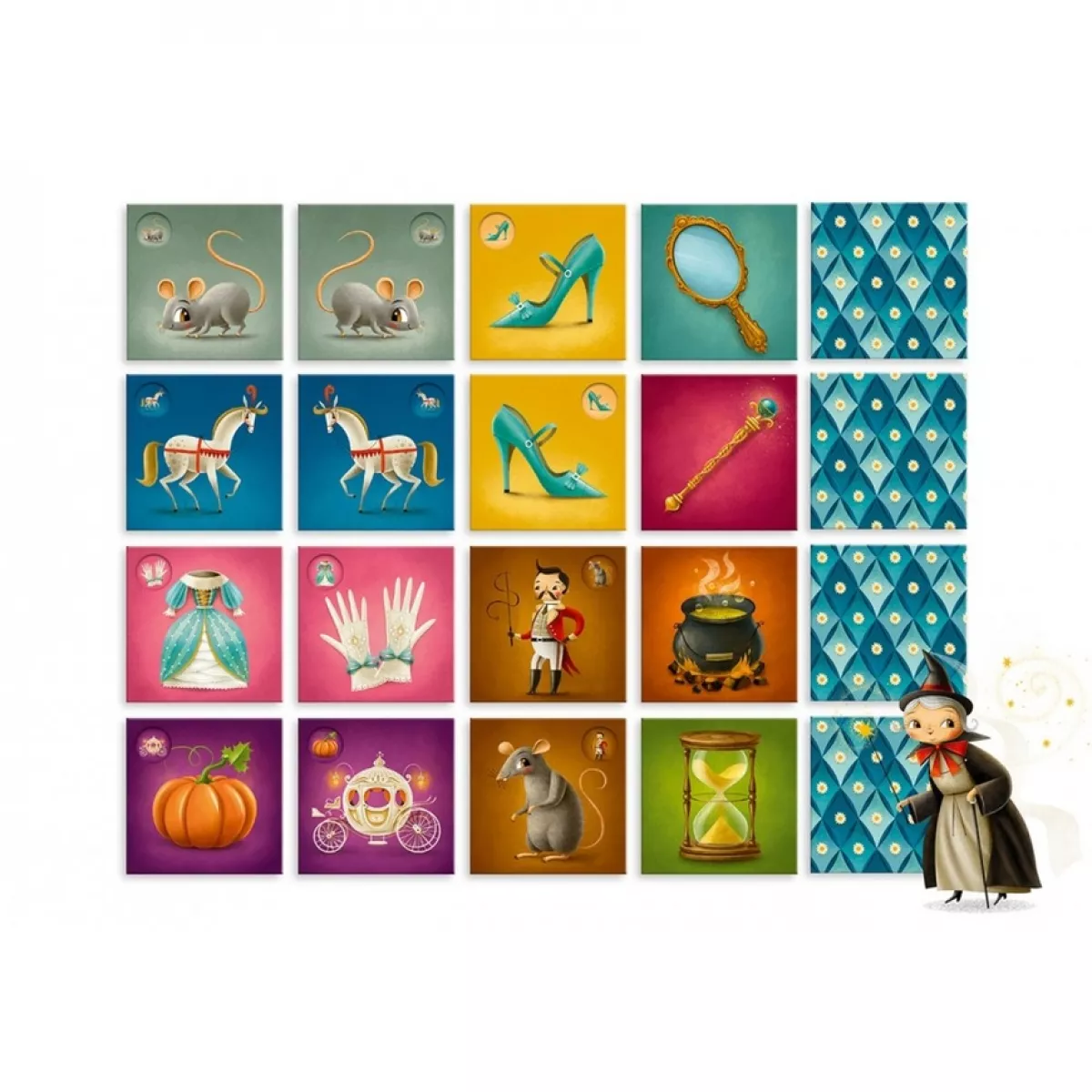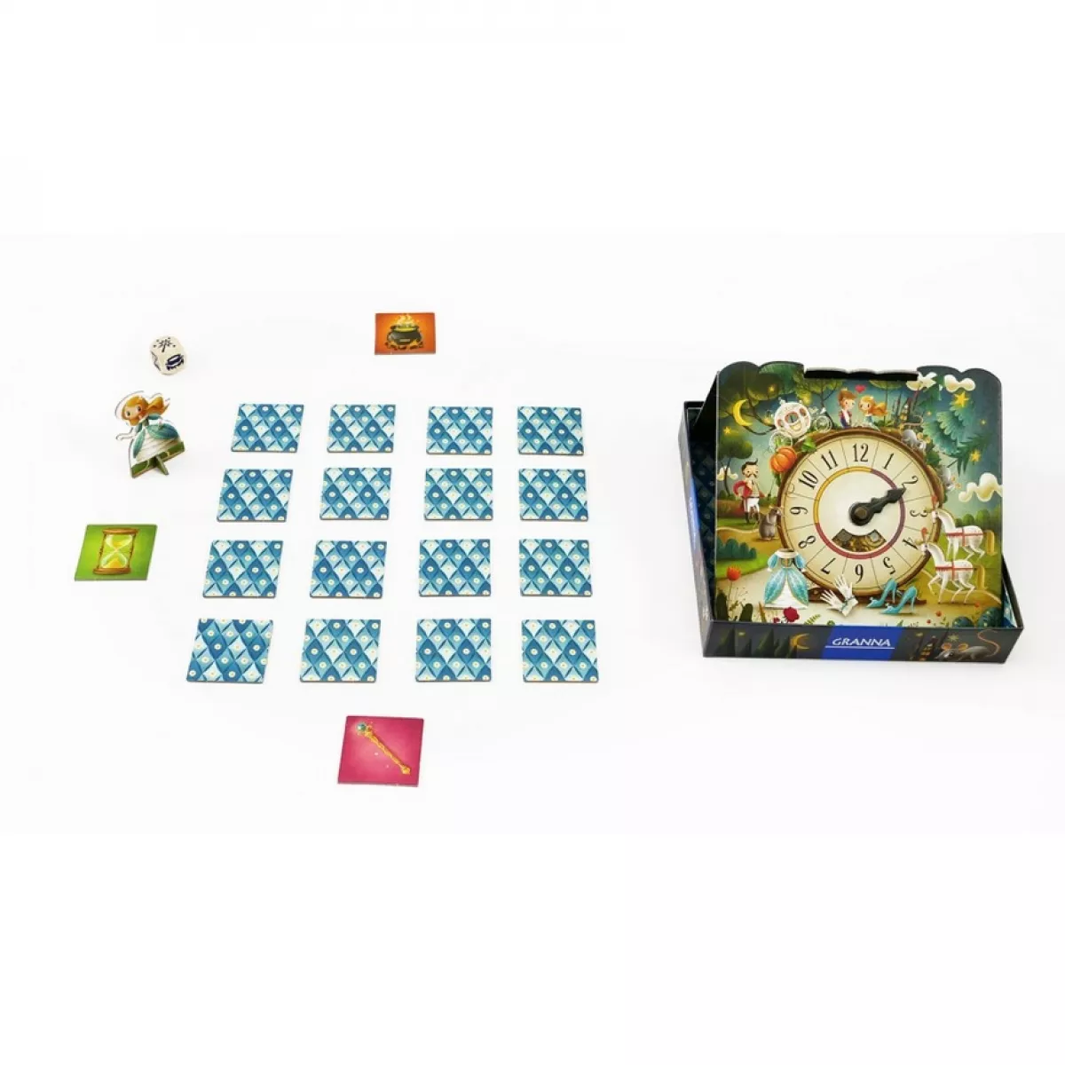 Сьогодні принц дає ВЕЛИКИЙ БАЛ! Попелюшка дуже хоче потрапити туди. Ми, наче фея-чарівниця, маємо допомогти Попелюшці вчасно дістатися палацу. Часу обмаль, починаємо! Ця гра передбачає взаємодію гравців, які змагаються проти ЧАСУ. Командна гра, де хід кожного гравця допомагає решті учасників запам’ятовувати та знаходити парні картки. Механіка гри заснована на правилах мемо, тобто пошуку пар. Додаткові елементи: кубик та магічні картки не тільки додають казкового антуражу, але й урізноманітнюють перебіг гри.  В правилах ви знайдете опис трьох різних варіантів гри, від простого до ускладненого. А ще, до речі, в ігри мемо дитина може грати самостійно. Так-так, шукати пари можна наодинці, але гуртом, звісно, цікавіше!  Хід гри: Кидайте кубик та виконуйте дію, вказану на ньому: відкрийте одну картку, підгляньте одну картку або спробуйте відшукати пару карток. Кожного разу, коли на кубику випадає пісковий годинник, після пошуку пари маєте перевести стрілку годинника на 1 годину вперед. Час спливає! Ви повинні знайти всі пари до дванадцятої години, бо чари працюють лише до півночі!