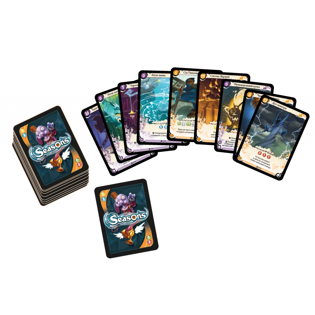 Архимаг – це дуже поважна та серйозна посада, а отже і кандидати на звання архимага не можуть бути занадто легковажними. Саме тому турнір серед чаклунів йде не скільки-небудь часу, а цілих три роки! І цього часу вдосталь, аби показати усі свої здібності у повній мірі. Пори року (Seasons) це гра для 2-4 кандидатів на посаду наймогутнішого чаклуна, яка поєднує у собі і механіки кидка кубів, і розіграш карт, і планування дій, і комбінування ресурсів. Чаклування потребує ретельної підготовки Під час партії гравці пройдуть крізь 4 сезони впродовж трьох років турніру. Кожний із сезонів має свій набір оригінальних та унікальних кубиків, які будуть вказувати і на ресурси, які можна заробити, і на дії, які можна виконати, та навіть на час, який пройде після поточного раунду. І хоч переможні очки – кристали – можна отримати і одразу з грані куба, але розіграш карток або торгівля ресурсами принесе набагато більше! І тут починається магія мікроменеджменту: кількість карт обмежена поточними здібностями вашого мага, кожний розіграш потребує ресурсів стихій, або навіть переможних очок, кількість ресурсів в запасі вкрай обмежена, а карти ще й можуть бути з одноразовим, постійним чи активуємим ефектом! Точно треба бути архимагом, аби провести ідеально всі операції! За три роки варто було б розпланувати власні дії Через три ігрових роки турнір завершиться, а його переможцем стане той, хто заробив якнайбільше кристалів. Але із цим треба бути обачним, адже нерозіграні карти підуть вам у штраф, а інші гравці можуть ще й поцупити ваші дорогоцінні камінчики разом із планами на перемогу! Тож якщо поєднання  комплексних механік з планування дій, дрібки випадковості від кидків кубів та неймовірного візуального оформлення настільної гри це саме те, чого ви чекаєте від партії – вам обов’язково сподобається настілочка Пори року. А перейти до прямої взаємодії із стихіями можна у грі Племена вітру, у якій нащадкам людства необхідно знову зробити планету Земля придатною до життя після техногенної катастрофи.