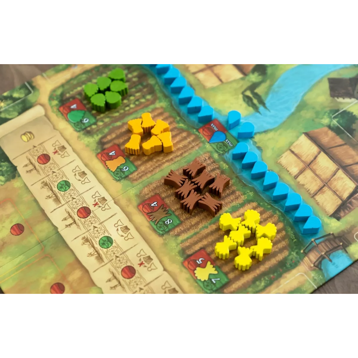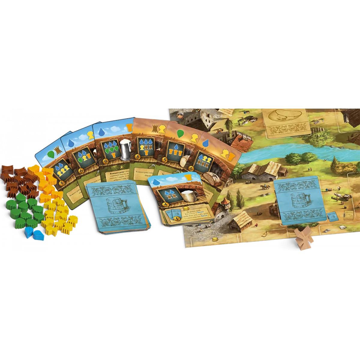 У коробці ігрове поле, 60 карт -, 30 карт хліба, 30 карт пива, 84 жетони ресурсів, маркер першого гравця, маркер року, блокнот для підрахунку очок, правила