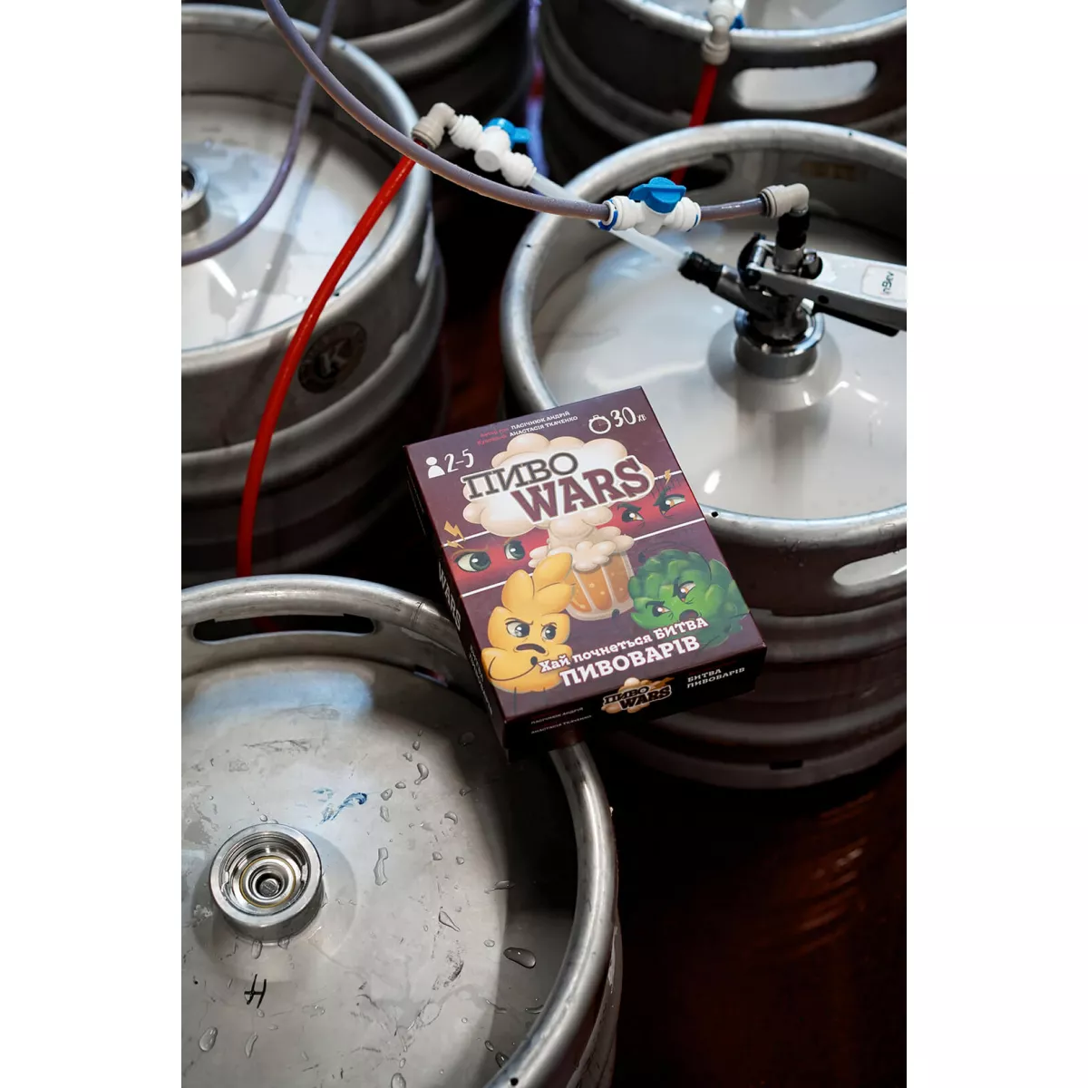 Увага! Гра не спонукає до вживання алкоголю, оскільки це може зашкодити вашому здоров'ю.   Багато людей думає, що у світі існує лише світле та темне, але насправді все ділиться на світле, темне та пшеничне нефільтроване. І саме пивовари краще за інших розбираються у всіх сортах та відтінках, які зроблять життя більш веселим та пінним! Пиво Wars це весела карткова гра для компанії від 2 до 5 гравців, які зможуть стати справжніми володільцями броварні та конкурувати з іншими за звання кращого пивовара. Пиво не з’являється нізвідки, хоча дуже хотілося б Бочка кришталевої води, темний солод, ваніль, ананас та трошки магії пивоваріння. Від таланту майстра залежить весь імідж компанії, тож постарайтеся підібрати саме ті інгредієнти, які потрібні для виконання всіх замовлень любителів пива. Але конкуренти не сплять і можуть підкинути вам свиню в мішку, як то заборону на купівлю ресурсу, або обмеження в сортах пива, що можна зварити. Після таких підступних дій не лишається нічого, крім відплати тією ж монетою! І протистояння броварень буде відбуватися, аж поки всі клієнти не будуть задоволені. Ось тоді і можна зрозуміти, хто наварив найсмачнішого, найароматнішого, найпіннішого пива та заслуговує звання пивовара року! Тож якщо вам не байдужа подібна тематика, то обов’язково придбайте коробочку з настілкою Пиво Wars, аби мати змогу варити пиво, поки ви вже будете пити зварене пиво! А коли ви бажаєте більш комплексного процесу виготовлення міцних напоїв, зверніть увагу на стратегічну єврогру Distilled. Таємниці напоїв, у якій ви будете контролювати всі етапи виготовлення алкоголю на власній винокурні.