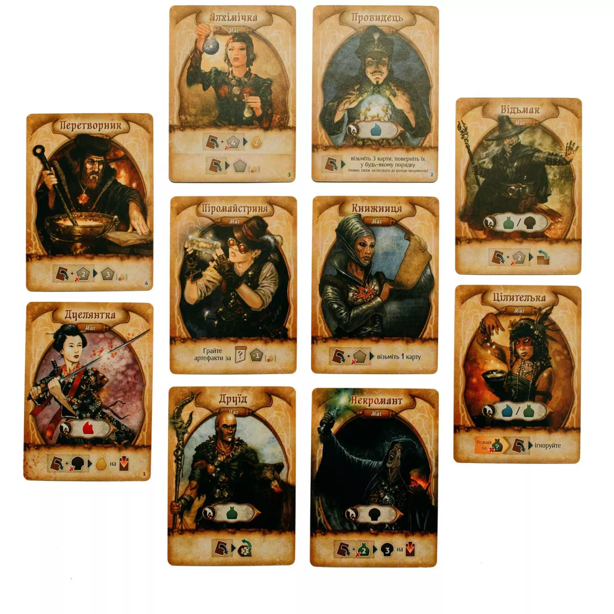 Настільна гра Res Arcana також відзначається високоякісними компонентами та чудовим артом, що занурює вас у світ фентезі та магії. Кожна карта – це витвір мистецтва, що детально зображує дивовижних істот, могутні заклинання та таємничі артефакти. Це не тільки естетичне задоволення, а й допомагає легше орієнтуватися у грі та запам'ятовувати властивості карт.