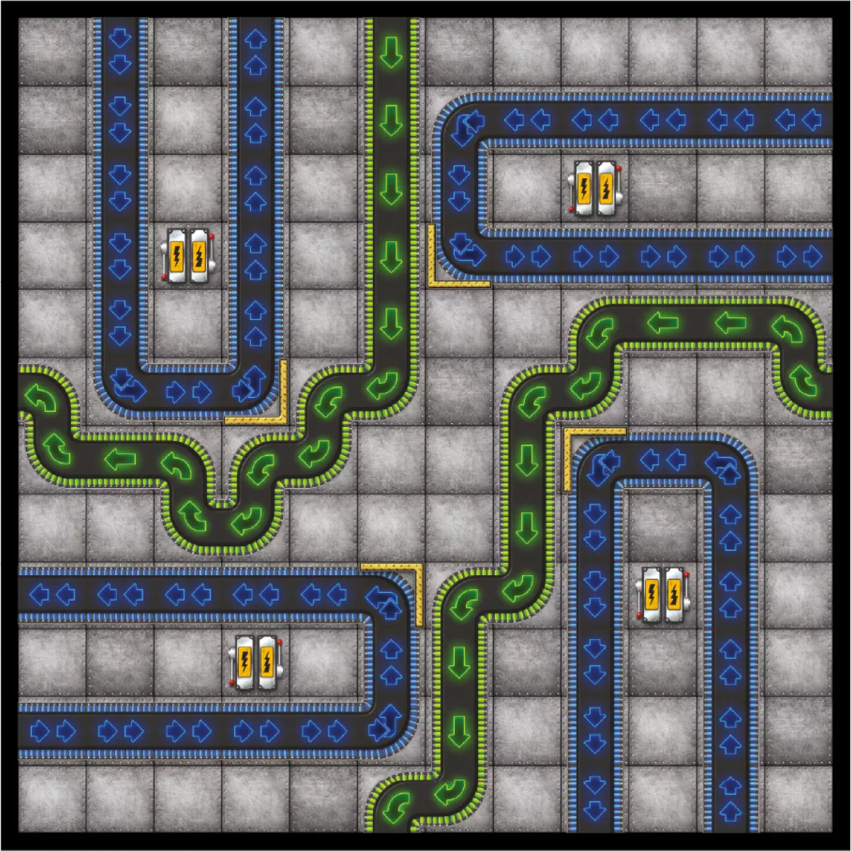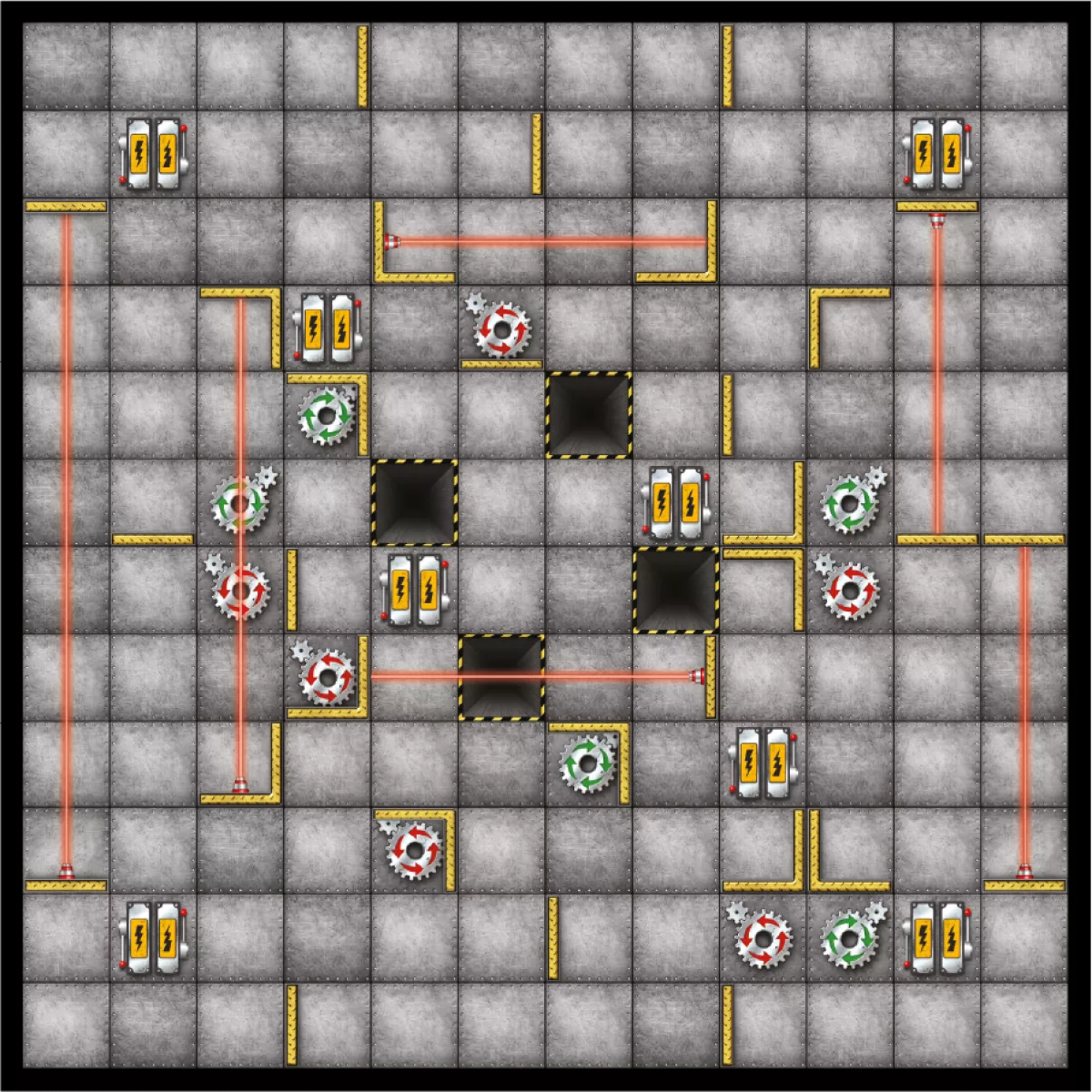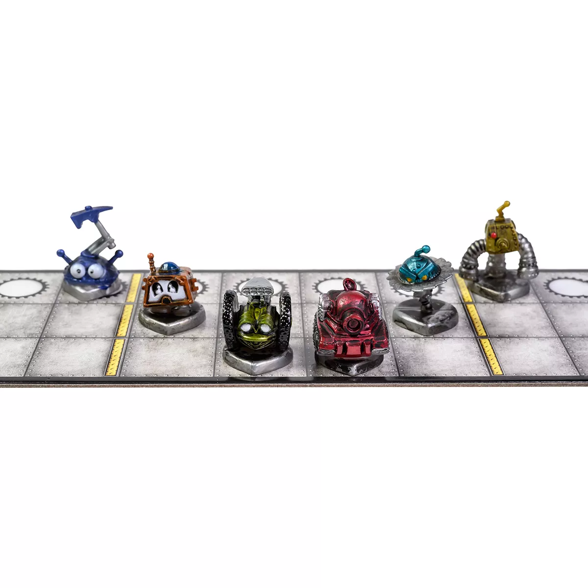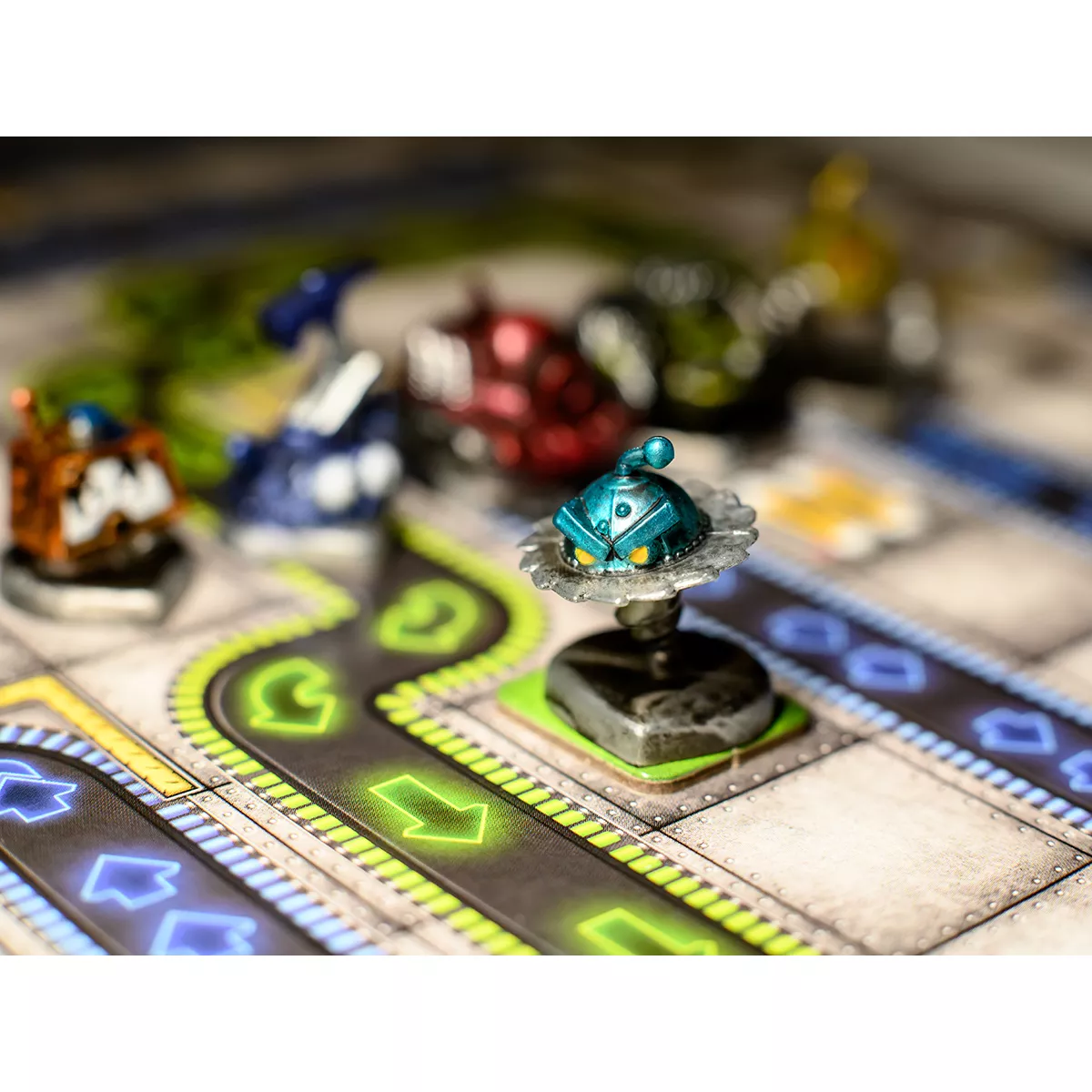 Прокладіть шлях до кожної з контрольних точок на трасі, сповненій перешкод. Використовуйте конвеєри, шестерні та акумулятори, щоб здобути перевагу, та уникайте палючих лазерів і підступних суперників, які можуть не лише атакувати, а й зіштовхнути вас за край, відправивши вашого робота на перезавантаження.