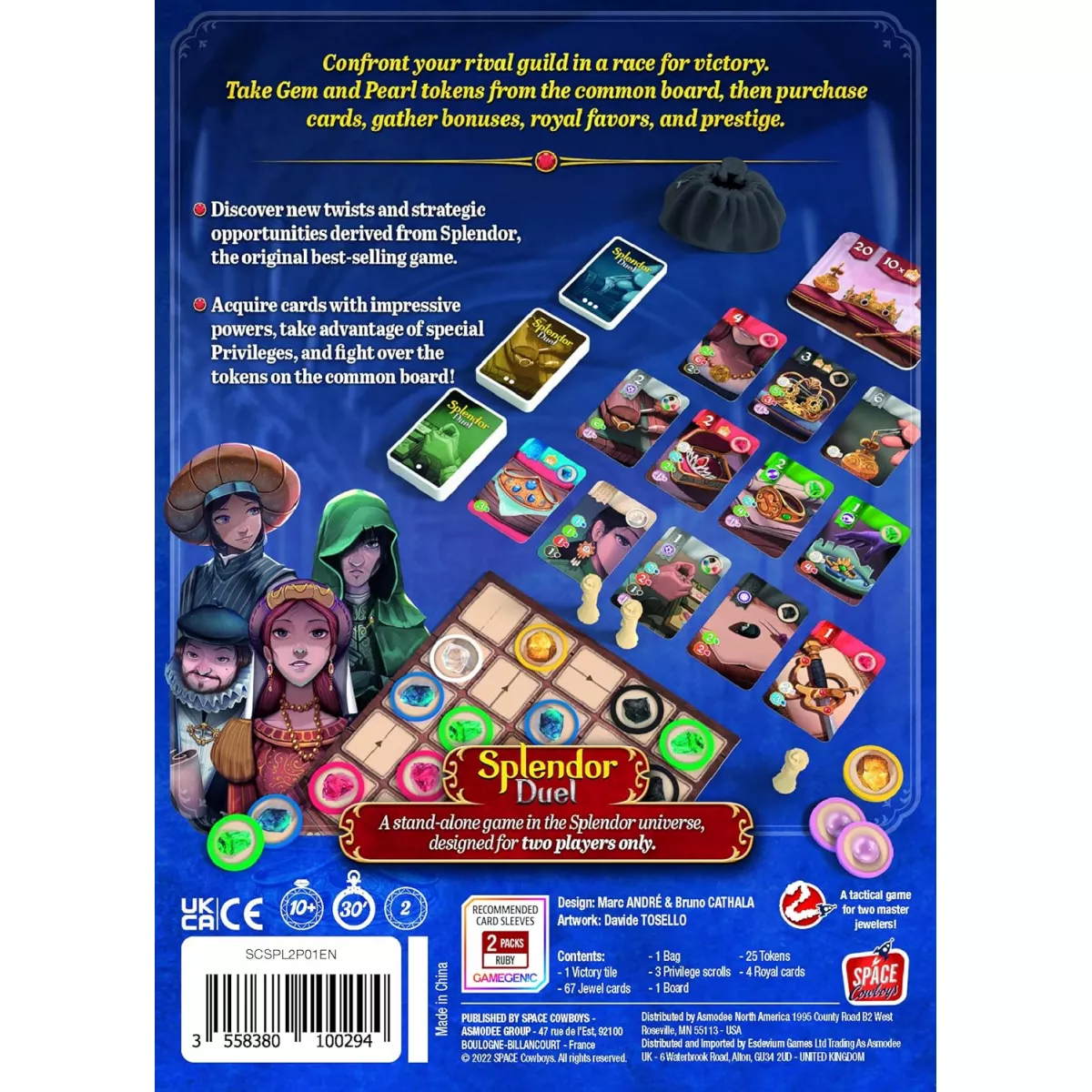 «Розкіш Дуель» – це найновіше видання хітового абстракту «Splendor» від Марка Андре. Версію гри для двох гравців допомагав розробляти дуельний геній Бруно Катала, автор «7 Чудес. Дуель» та «Mr Jack». Дуельна гра залишає основні тематичні та ігроладні особливості оригіналу, і все ж привносить до протистояння нову динаміку і просторові рішення, завдяки яким вартує місця в колекції любителів ігор на двох.