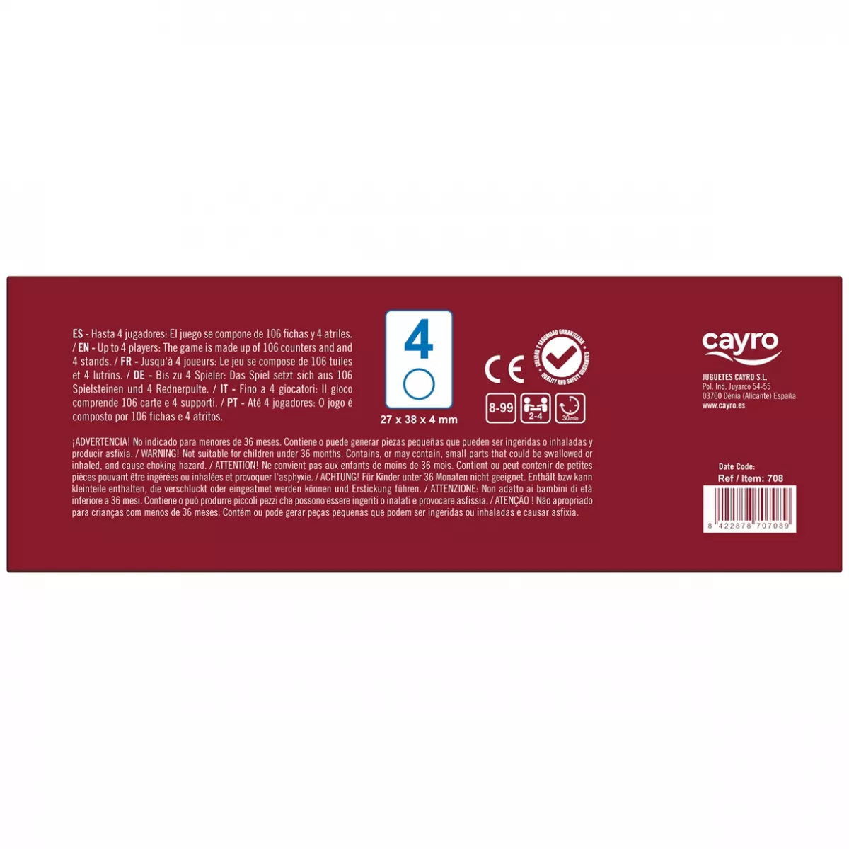 У коробці 4 підставки для фішок , 106 фішок , сумочка, правила гри
