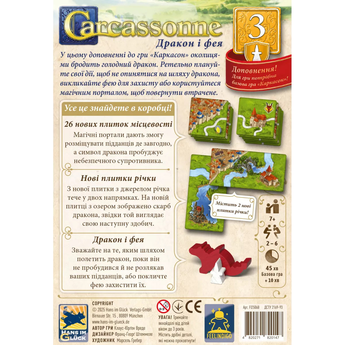 Зануртеся у світ, де на кожному кроці чекають чудеса та небезпеки, де стратегічне мислення винагороджується, а удача може посміхнутися найсміливішим. "Каркасон: Дракон та Фея" – це той елемент, який додасть іскри та чарівності у ваші ігрові вечори, перетворивши звичайну гру на незабутню пригоду. Зберіть друзів, приготуйтеся до викладання плиток та станьте частиною нової легенди Каркасону!