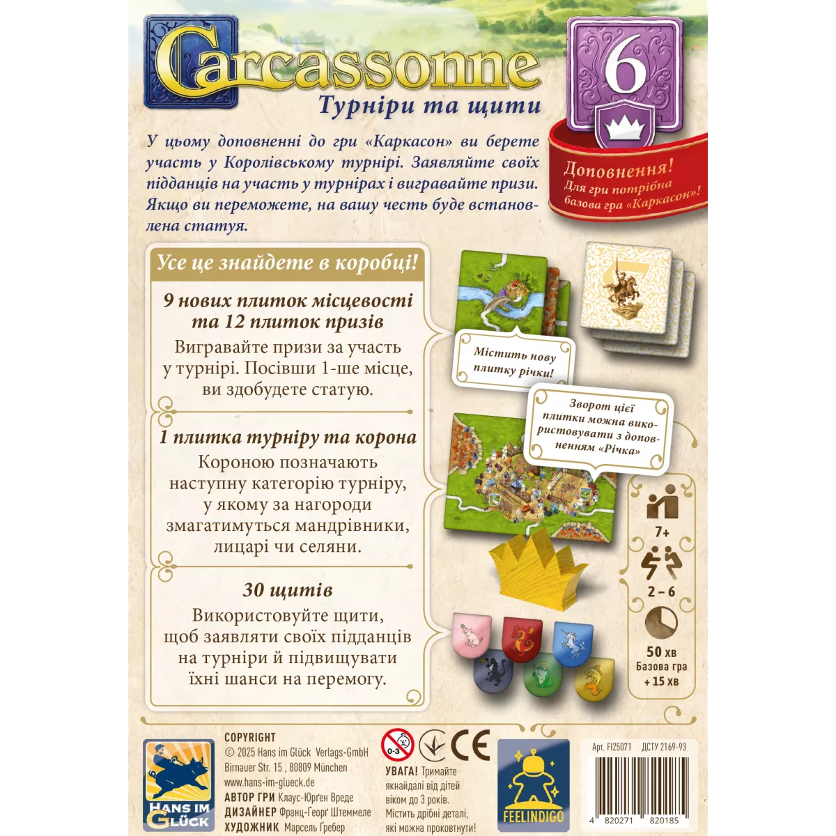 Пориньте у захопливий світ середньовічних пригод з настільною грою «Каркасон: Турніри та щити» – доповненням до всесвітньо відомої класики, що перетворить ваші ігрові вечори на справжнє свято стратегії та тактики. Це розширення не просто додає нові елементи, воно розширює горизонти базової гри, дозволяючи вам з головою поринути у атмосферу лицарських поєдинків та величних укріплень. Кожен хід стає ще більш значущим, а рішення – вагомішими, адже на кону стоять не лише очки, а й слава у лицарських турнірах.