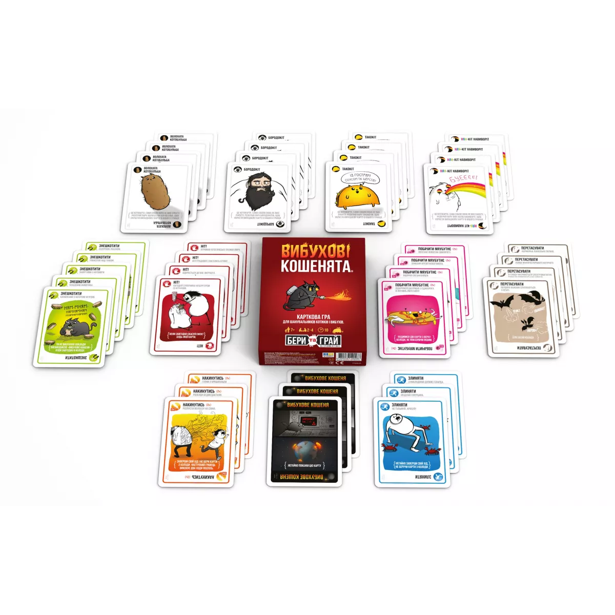 Весела гра для вечірок, що стала надзвичайно популярною після успішної кампанії на «Кікстартері» під назвою Exploding Kittens. Гра може похвалитися простим, інтуїтивно зрозумілим ігроладом і дуже кумедним іронічним сетингом з вибуховими милими котиками.
