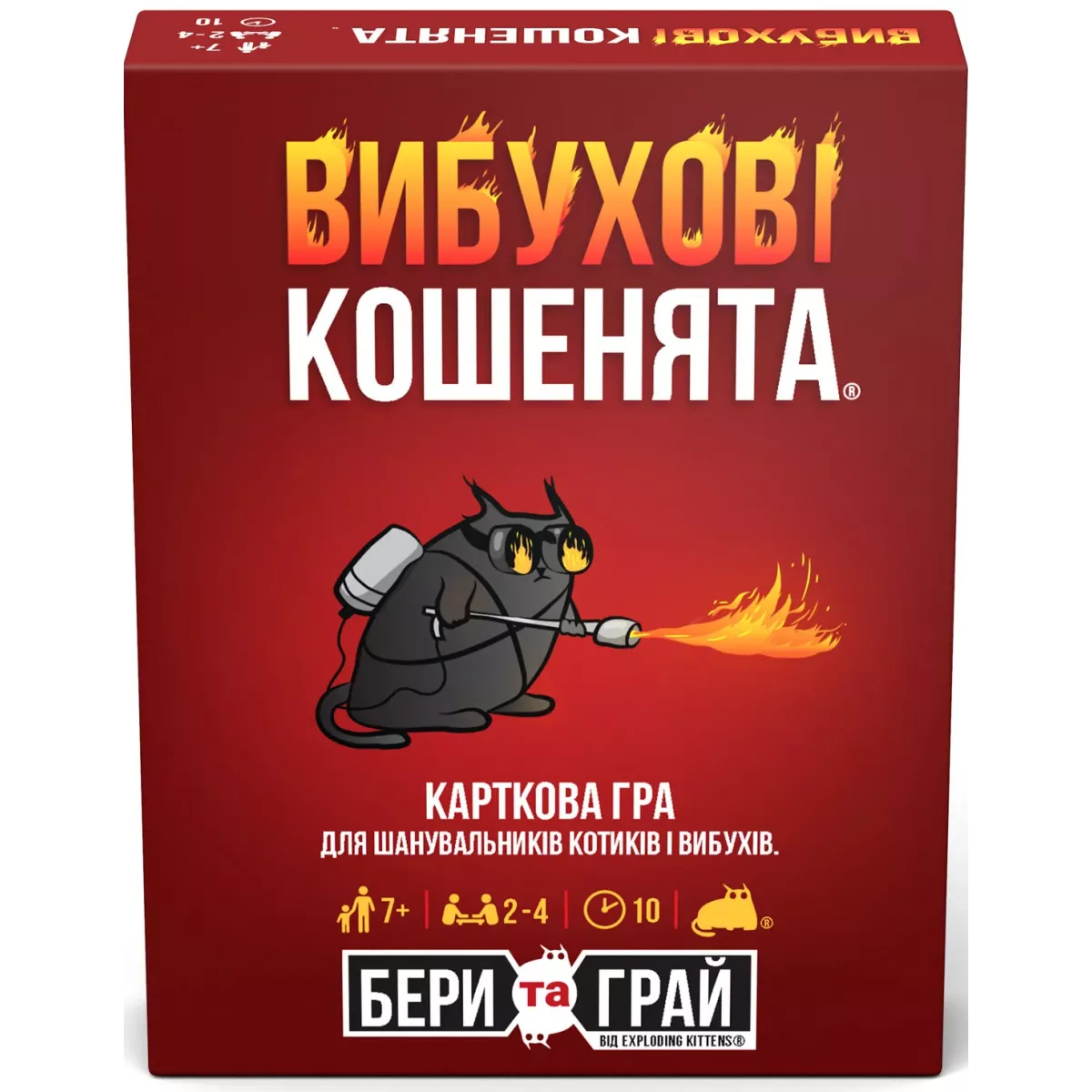 Гра пропонує випробувати удачу за методом російської рулетки. Учасники по черзі тягнуть карти, і якщо хтось витягує вибухове кошеня, він вибуває з гри. Також гравці можуть розіграти певну кількість наявних на руці карт, серед яких деякі можуть врятувати від вибуху, інші дозволять подивитися на три верхні карти в колоді, перш ніж добирати. Є такі карти, що дають можливість припустити хід, змушують противника добрати кілька карт або взагалі крадуть у нього карту з руки.