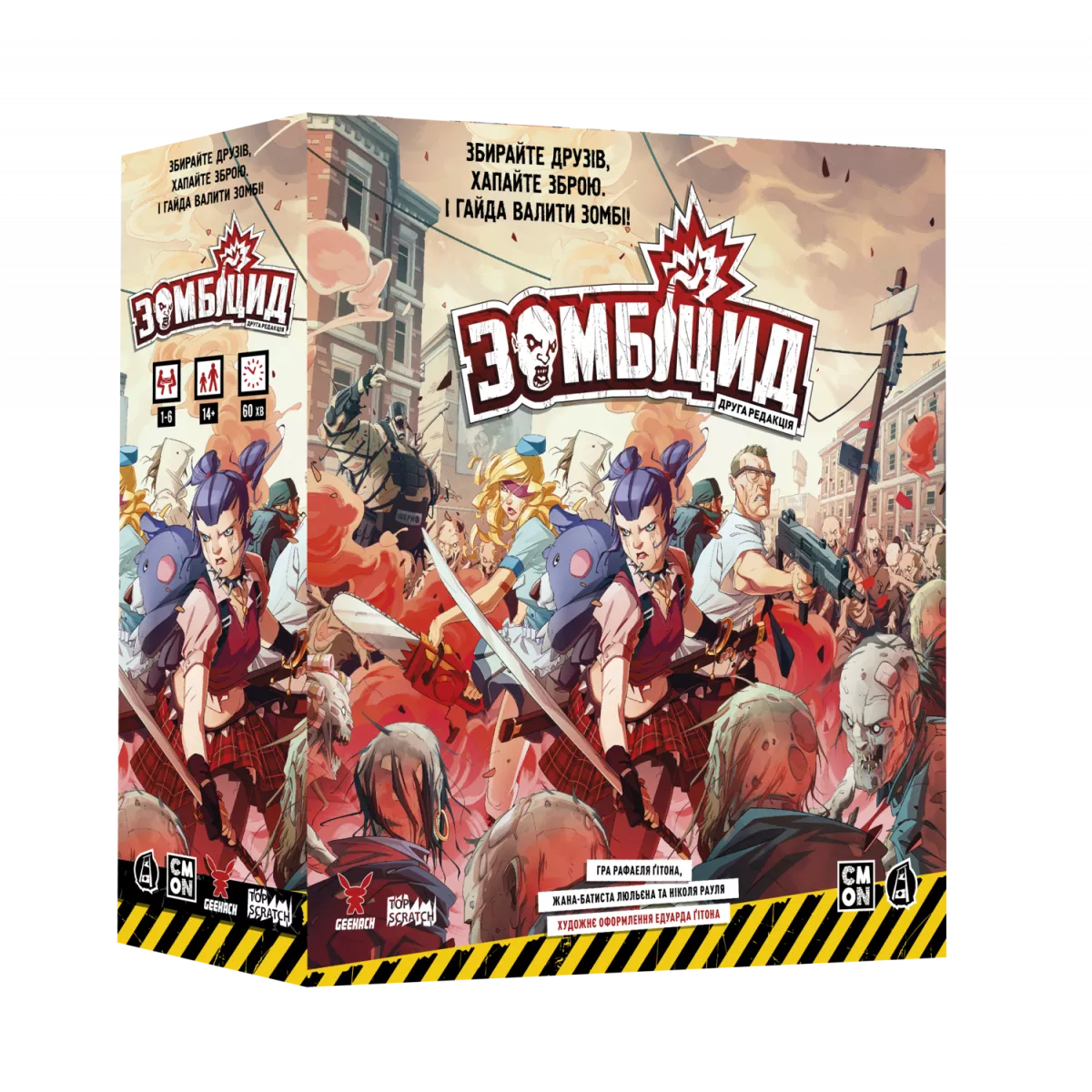 Друге видання культової кооперативної гри про зомбі-апокаліпсис. Настільна гра «Zombicide: 2nd Edition» вийшла в 2021 році. Вона отримала відмінні оцінки та відгуки на сайті «BoardGameGeek». Авторів гри – Рафаеля Ґітона, Жана-Батиста Люльєна та Ніколя Рауля – Гікач знає за грою «Морок Пітьми», а також за іншими іграми серії «Зомбіцид»: класичний «Zombicide», «Zombicide: Black Plague», «Zombicide: Green Horde», «Zombicide: Invader» і т.д.