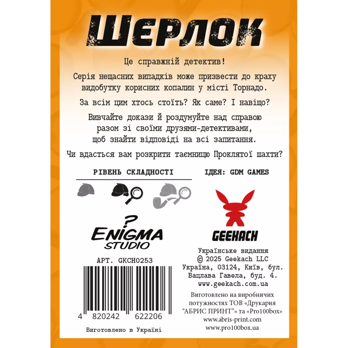 «Шерлок» — популярна серія швидких кооперативних детективів, де в кожній коробочці на вас чекає окрема справа. Це цікавий філер, який можна розслідувати соло, з друзями або членами сім’ї. Гра вимагає глибокого аналізу та забезпечує справжнє занурення у розслідування.