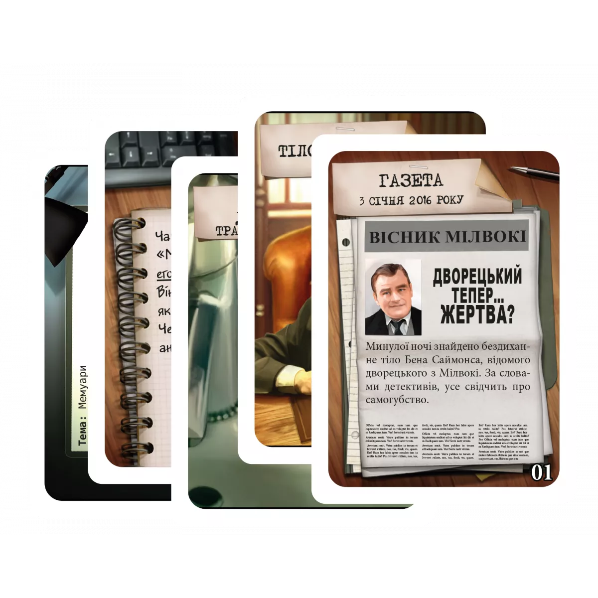 Вивчайте докази й роздумуйте над справою разом зі своїми друзями-детективами, щоб знайти відповіді на всі запитання. Чи зможете ви розгадати таємницю його смерті?
