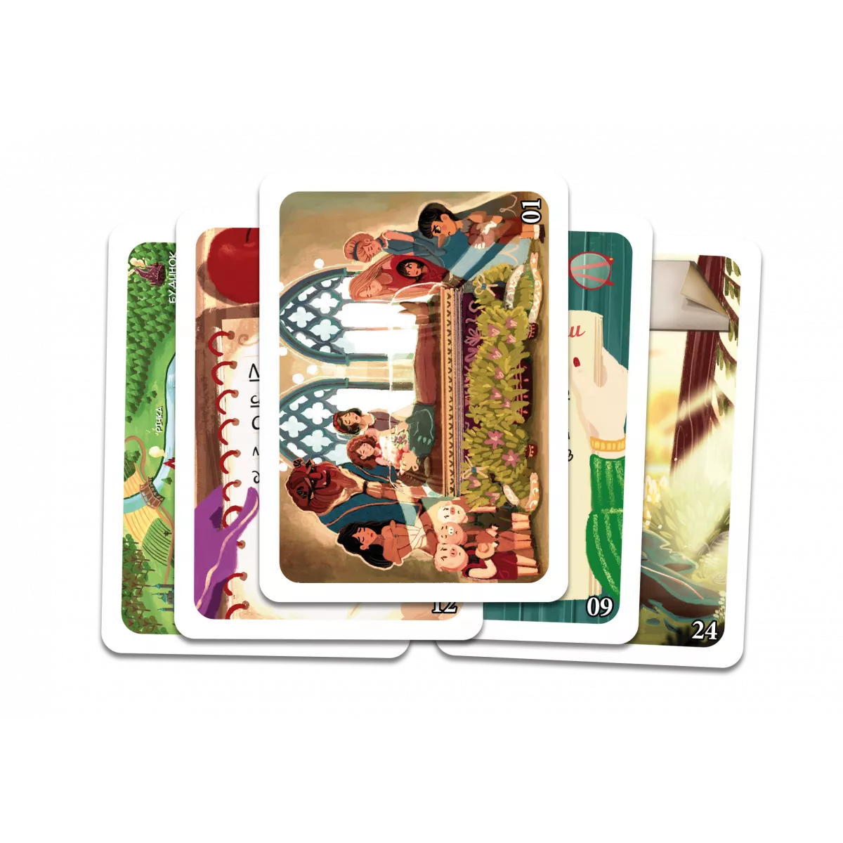 У коробці 32 карти , лист зі вступом, правилами, питаннями й відповідями
