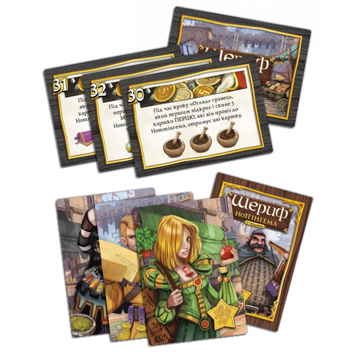 Весела компанійська гра, споріднена картковій грі «Вірю-не-вірю». Це захоплююча гра на блеф, мабуть, найкраща в своєму роді. Гра була розроблена в 2014 році й отримала вже друге видання з переробленим артом. У ньому на вас чекають оновлені правила та нові компоненти: шостий торговець, карти чорного ринку та помічники шерифа. Над її створенням працювали автори, відомі по проектам «Склад 51» і «Війни магів». Гра ставала номінантом конкурсів «Golden Geek-2014» (краща гра року, краща паті-гра, найкраща карткова гра і найкраща сімейна гра), «Origins Awards--2015» і «SXSW Gaming Awards-2015». У 2015 році «Шериф Ноттінгема» взяв головну премію на конкурсі «Boardgames Australia Awards». На даний момент гра займає 19-е місце серед паті-ігор і 35-е місце в рейтингу кращих сімейних ігор світу на сайті «BoardGameGeek».
