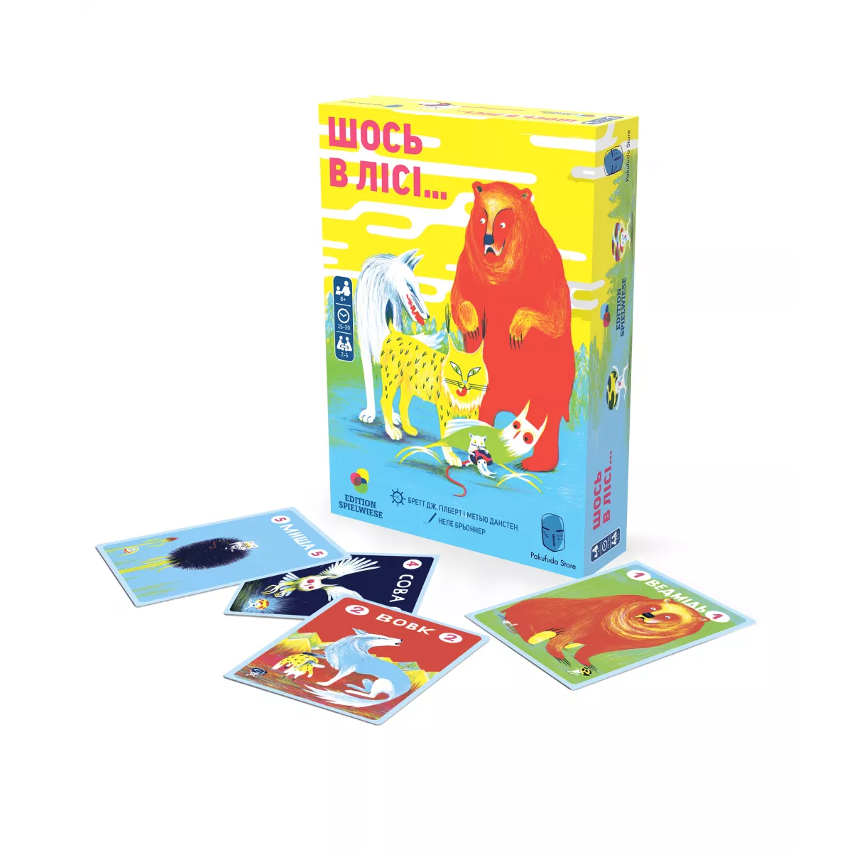 «Шось в лісі...» – це веселий картковий патіґейм на виживання та полювання. Гра триватиме кілька раундів, у кожному з яких ви вибиратимете з п’яти тварин. Сильніші тварини зможуть полювати раніше, але слабші принесуть більше очок. Якщо вам до вподоби нескладні карткові патіґейми, Joy також радить звернути увагу на ігри «Голодна мавпа» та «Велонімо».