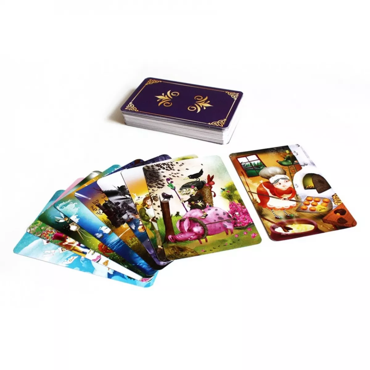 Правила гри інтуїтивно зрозумілі та дозволяють швидко розпочати гру. Гравці по черзі витягують картки з колоди, кожна з яких містить унікальний елемент: персонажа, предмет, місце дії або подію. Завдання гравця – додати витягнутий елемент до спільної історії, продовжуючи її. Важливо не просто назвати об'єкт на картці, а органічно вплести його в розповідь, розбудовуючи сюжетну лінію. Це може бути несподіваний поворот, новий герой або таємниче місце, що змінює хід подій. Наприклад, витягнувши картку із зображенням старого ключа, гравець може продовжити історію так: "Раптом герой знайшов старий ключ, який ідеально підійшов до замка у таємничих дверях, що вели у покинутий замок..." Можливі варіанти гри включають командні змагання, де групи гравців створюють власні історії, або індивідуальні виклики, де кожен гравець намагається перевершити попереднього оповідача у креативності.