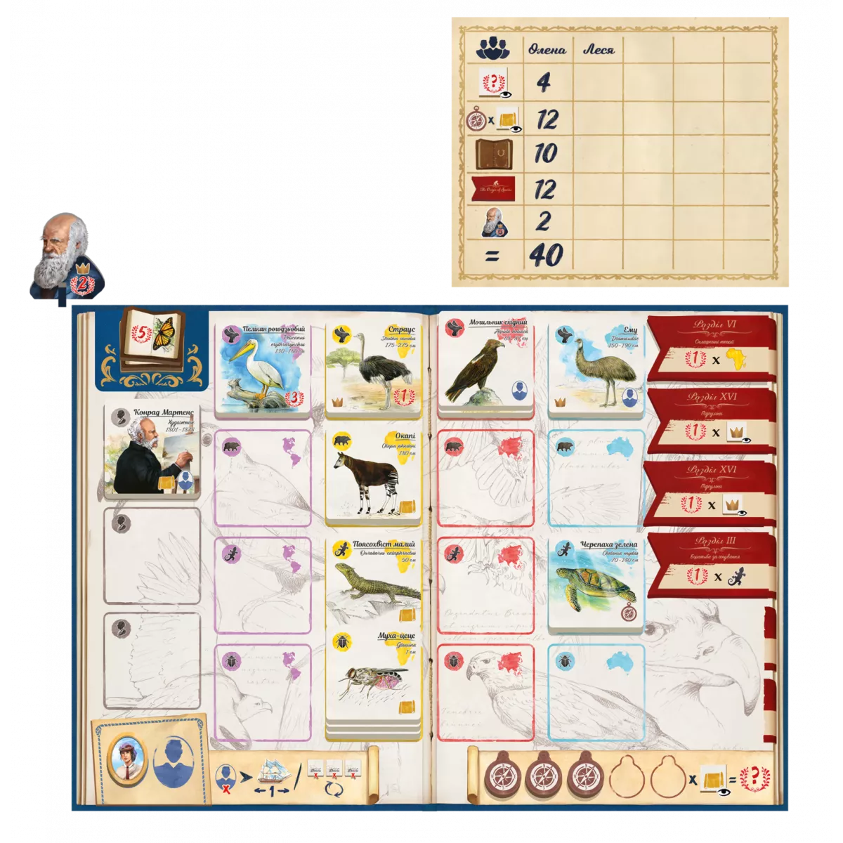 вивчити тварину або почерпнути натхнення — обрати одну з трьох доступних плиток тварин чи персонажів з поля експедицій та розмістити на своєму планшеті,