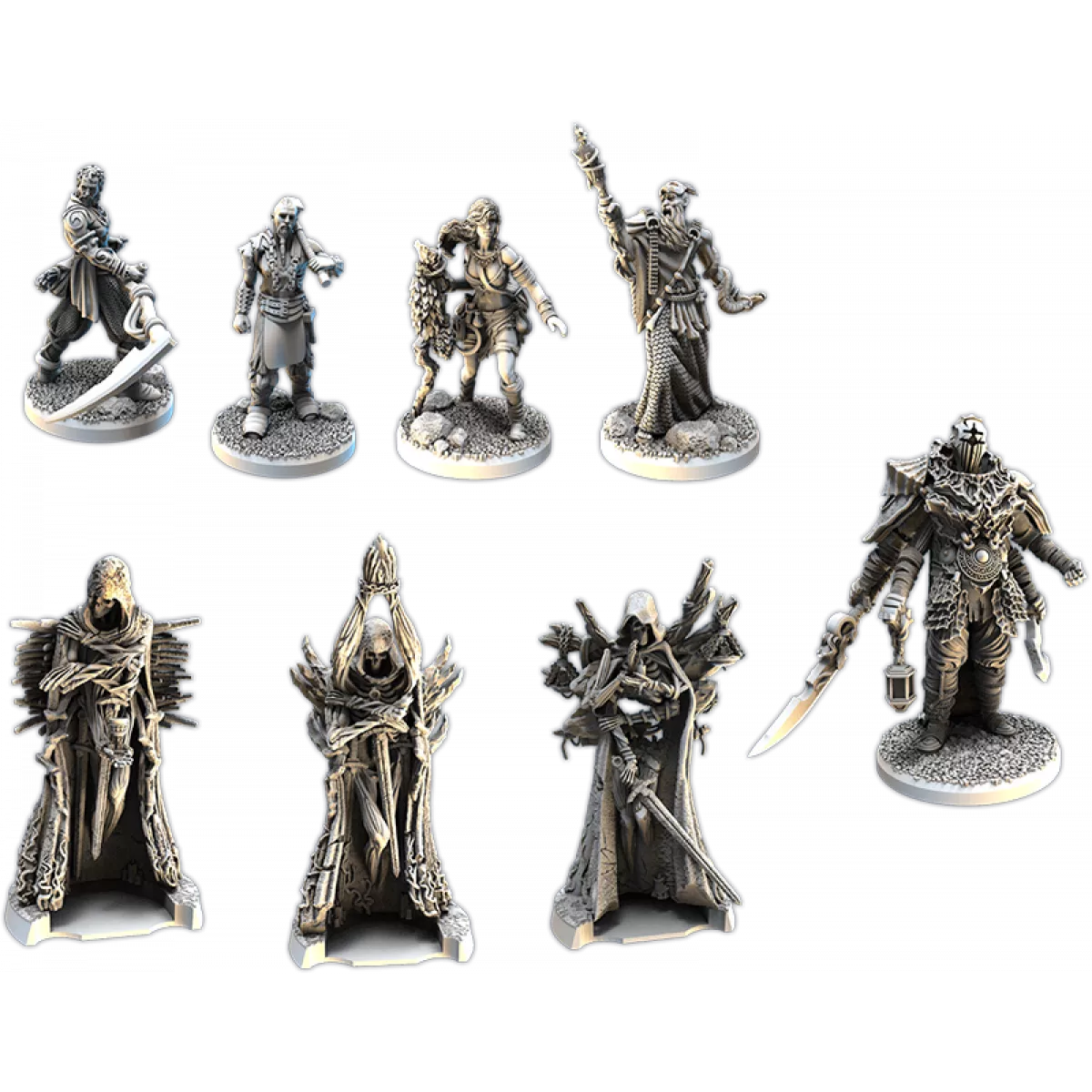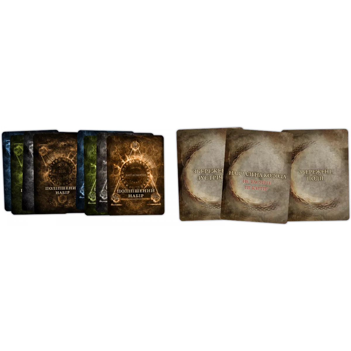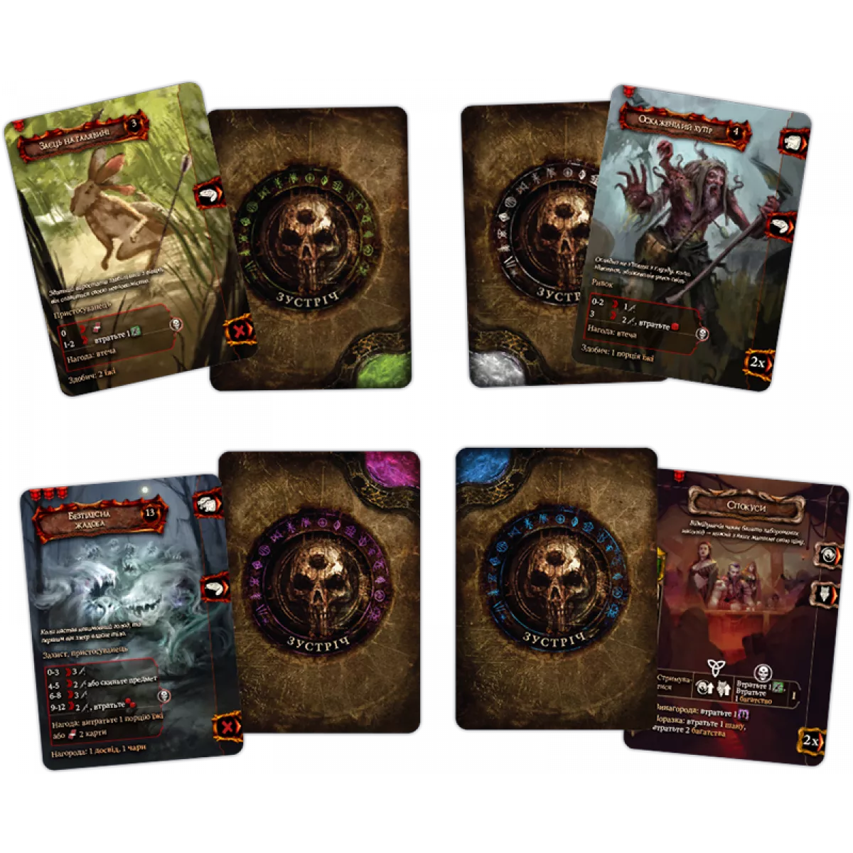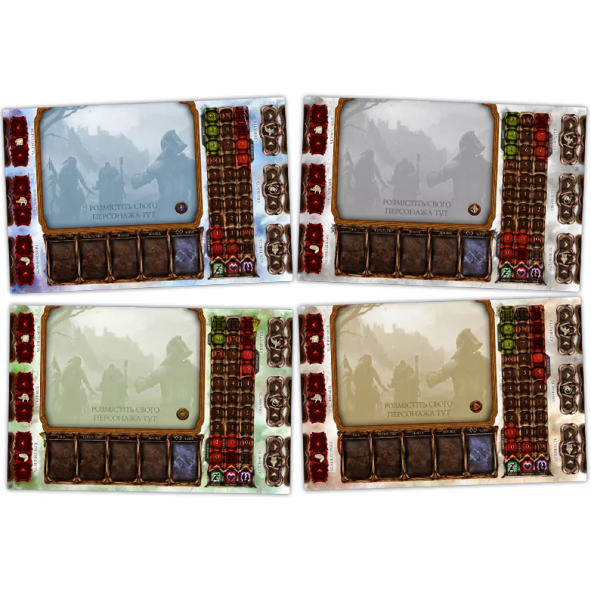 | У коробці | Фігурки (4 ФІГУРКИ ПЕРСОНАЖІВ, 1 ФІГУРКА ПРЕДТЕЧІ, 3 ФІГУРКИ МЕНГІРІВ), 4 вступні листи, 4 мапи пригод, 30 аркушів збереження, Путівник грою, Книжка правил, Падіння Авалону. Дослідницький щоденник, 4 планшети, 4 плитки персонажів, 10 лічильників, 8 жетонів часу, 4 жетонів місій, 4 обмежувачі здоров'я, 90 універсальних маркерів, 25 великих маркерів, 1 звичайний кубик та 1 кубик вартового, 200 карток бою/дипломатії, 92 карти події, 120 карт персонажів - 30 карт Арева, 30 карт Хробака, 30 карт Бйора, 30 карт Айлі, 144 карти зустрічей, 4 карти "Ви божеволієте" та 5 карт "Ви помираєте", 11 карт роздільниць, 63 карти локації та 9 карт пам'яток, 42 карти таємниць, 65 карт предметів та 36 карт навичок |