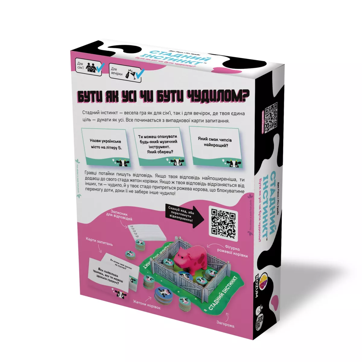 Думати як більшість і не вирізнятися — як виявилося, не така уже проста задачка! У цій незвичній грі для сім'ї або вечірок вам необхідно піддатися «стадному інстинкту», щоб перемогти.