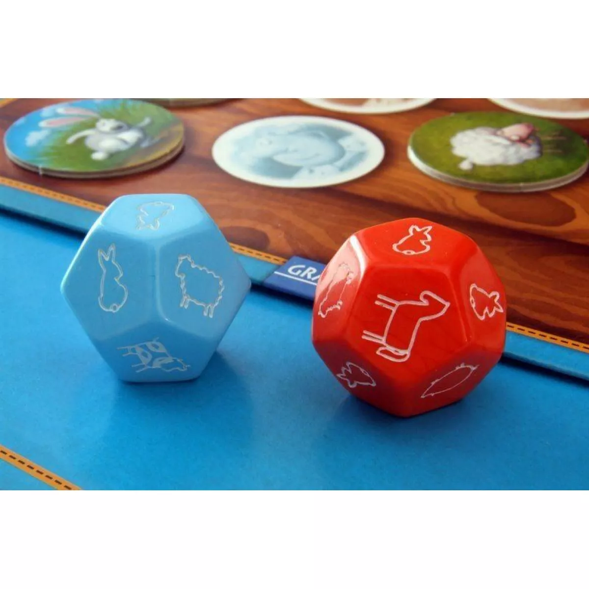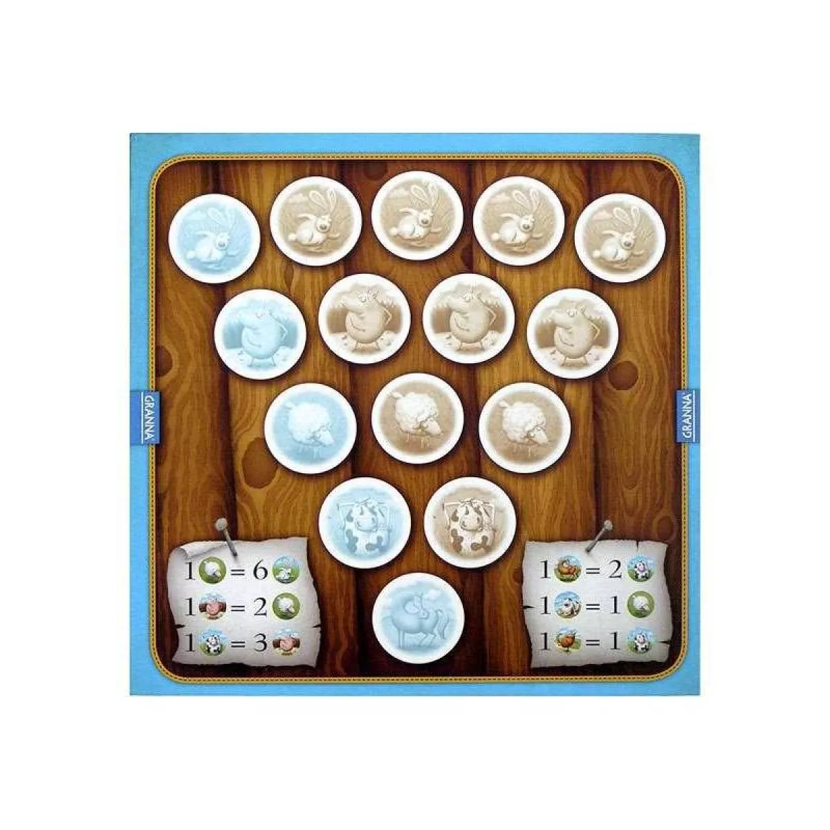 У коробці 4 ігрових поля, 2 дванадцятигранних кубика, 60 кроликів, 24 вівці, 20 свиней, 12 корів, 4 коня, 4 маленькі фігурки собак із пластику, 2 пластикові фігурки чарівних великих собак, правила гри